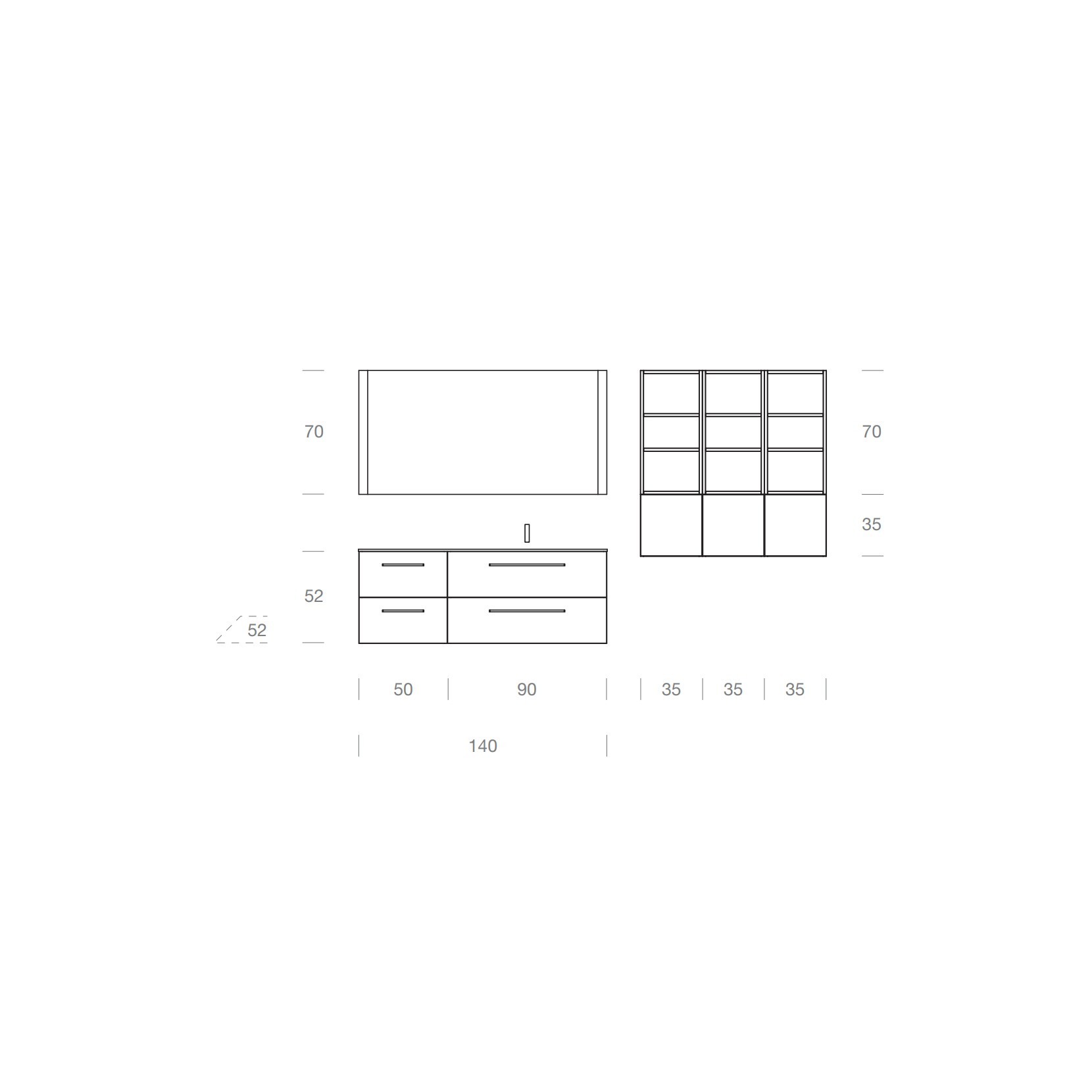 La composizione può essere richiesta in diverse misure o finiture, tramite preventivo.