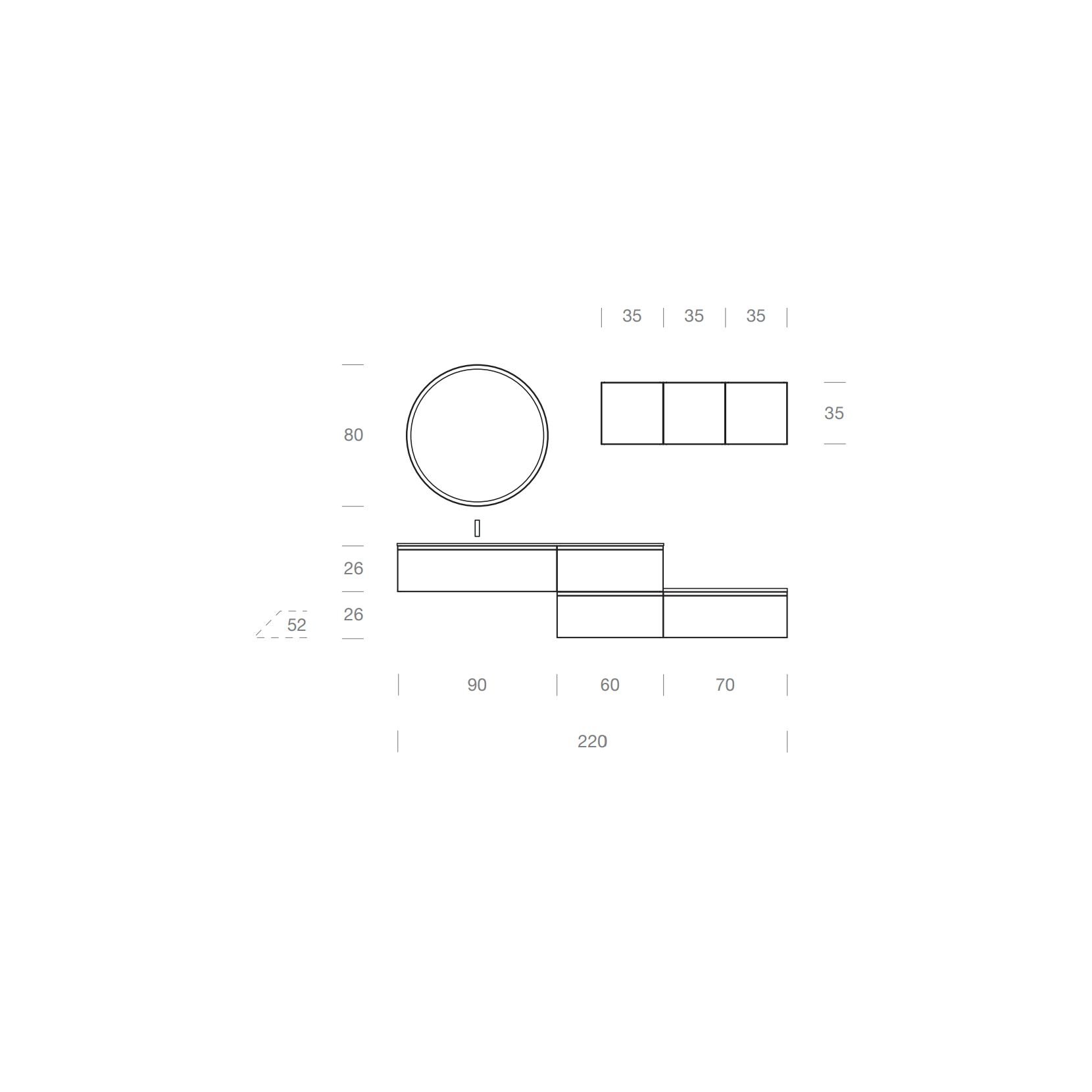 La composizione può essere richiesta in diverse misure o finiture, tramite preventivo.