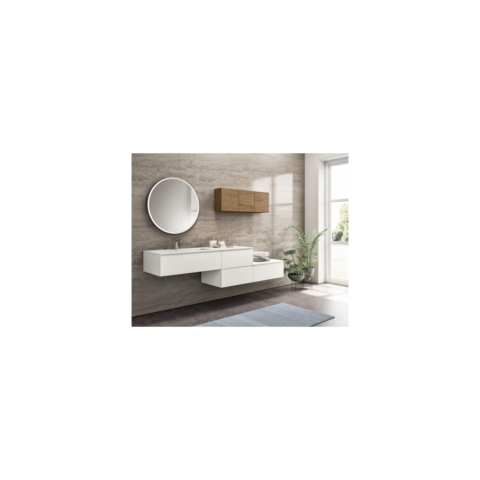 Specchio Edonè retroilluminato con cornice bianca. Pensili in essenza 961 Nativo Cotto.