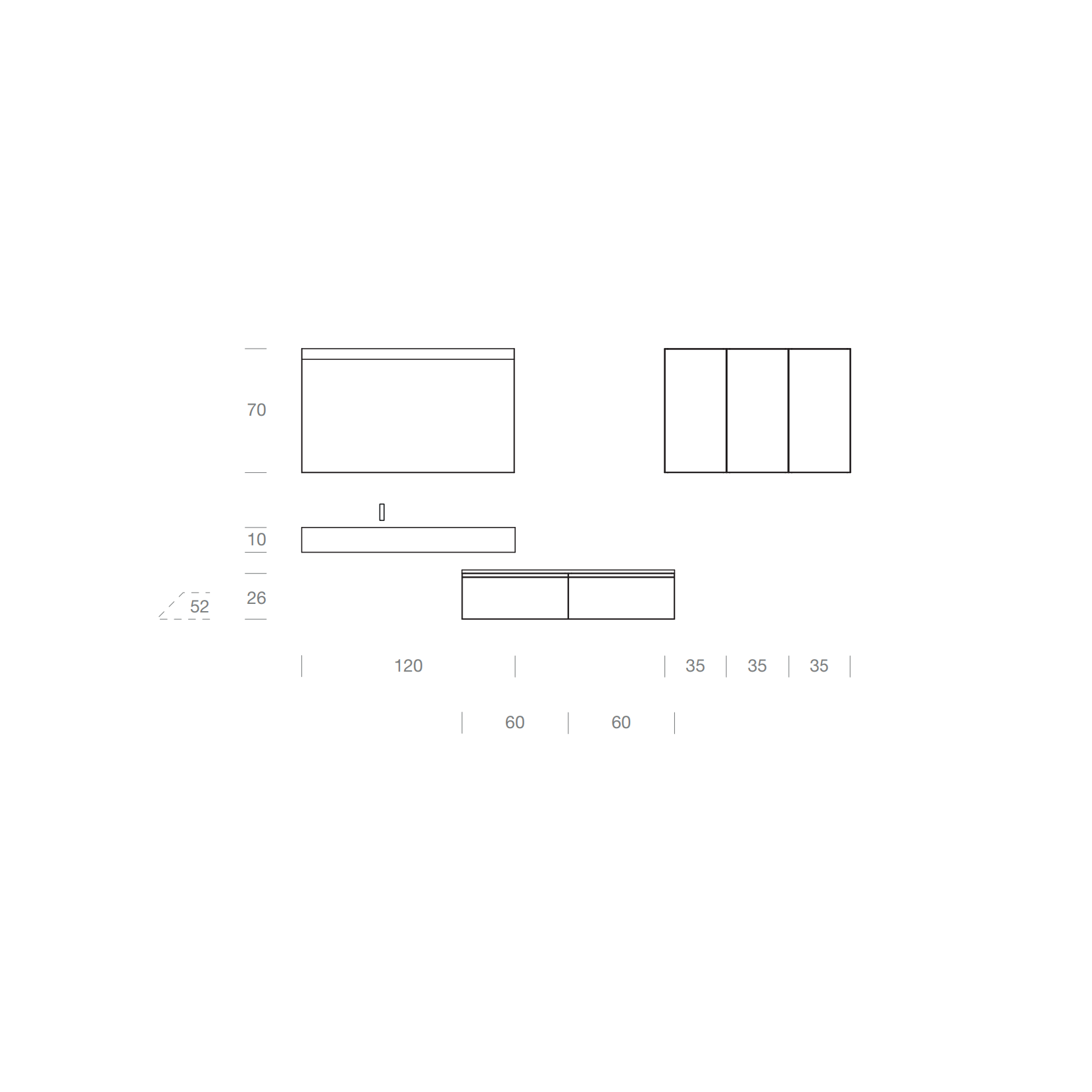 La composizione può essere richiesta in diverse misure o finiture, tramite preventivo.
