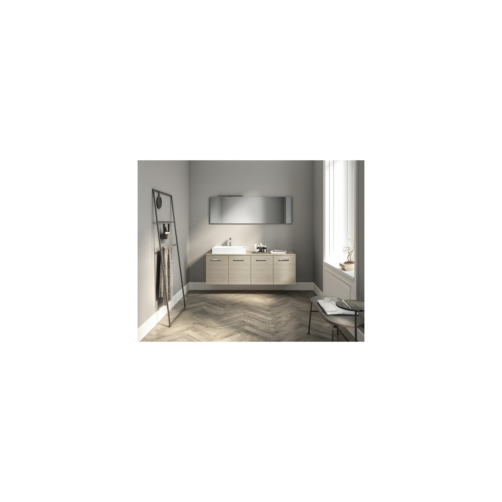 Portalavabo e base in essenza 944 Primitivo Naturale con maniglia G62 cromo.