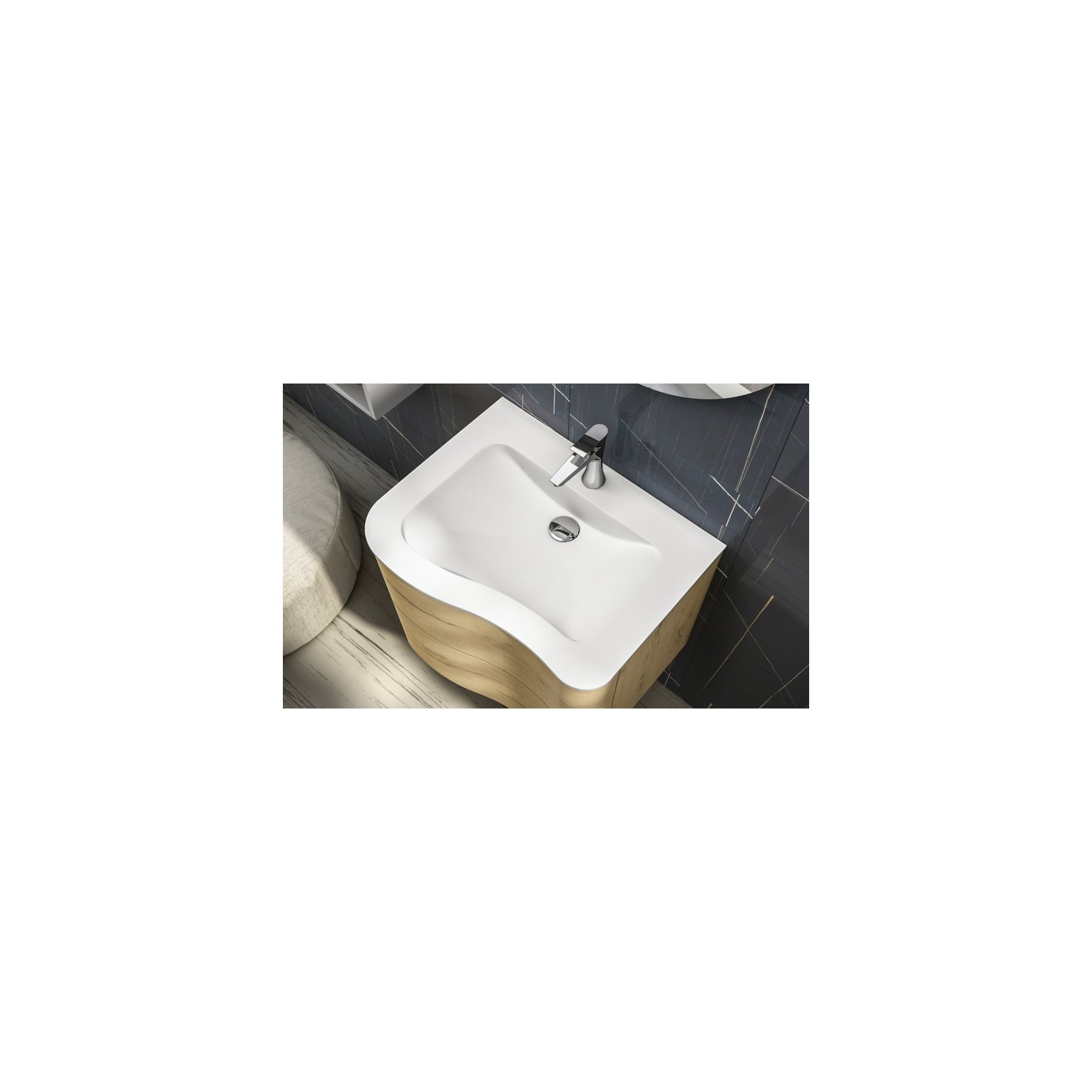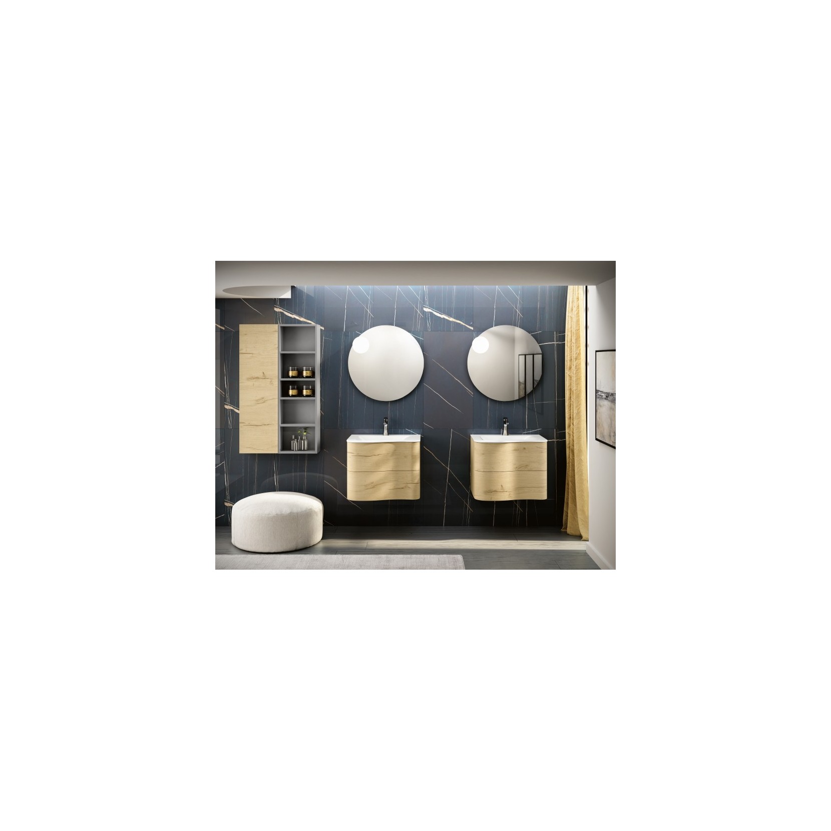 Portalavabo in essenza 960 Nativo Naturale con apertura push pull; top in Tecnolite bianco.