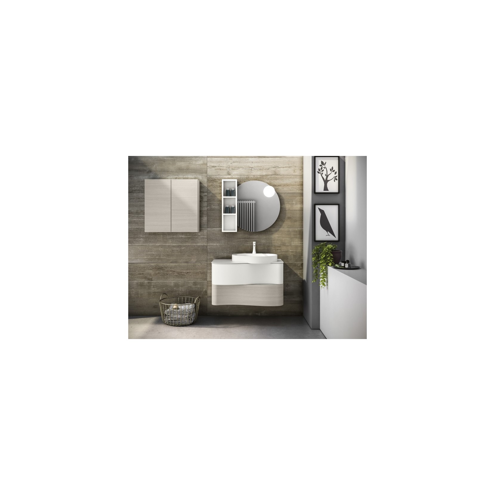 Mir specchio con pensile a giorno laccato opaco 017 Latte e lampada Focus. Pensili in essenza 969 Rovere Silver.