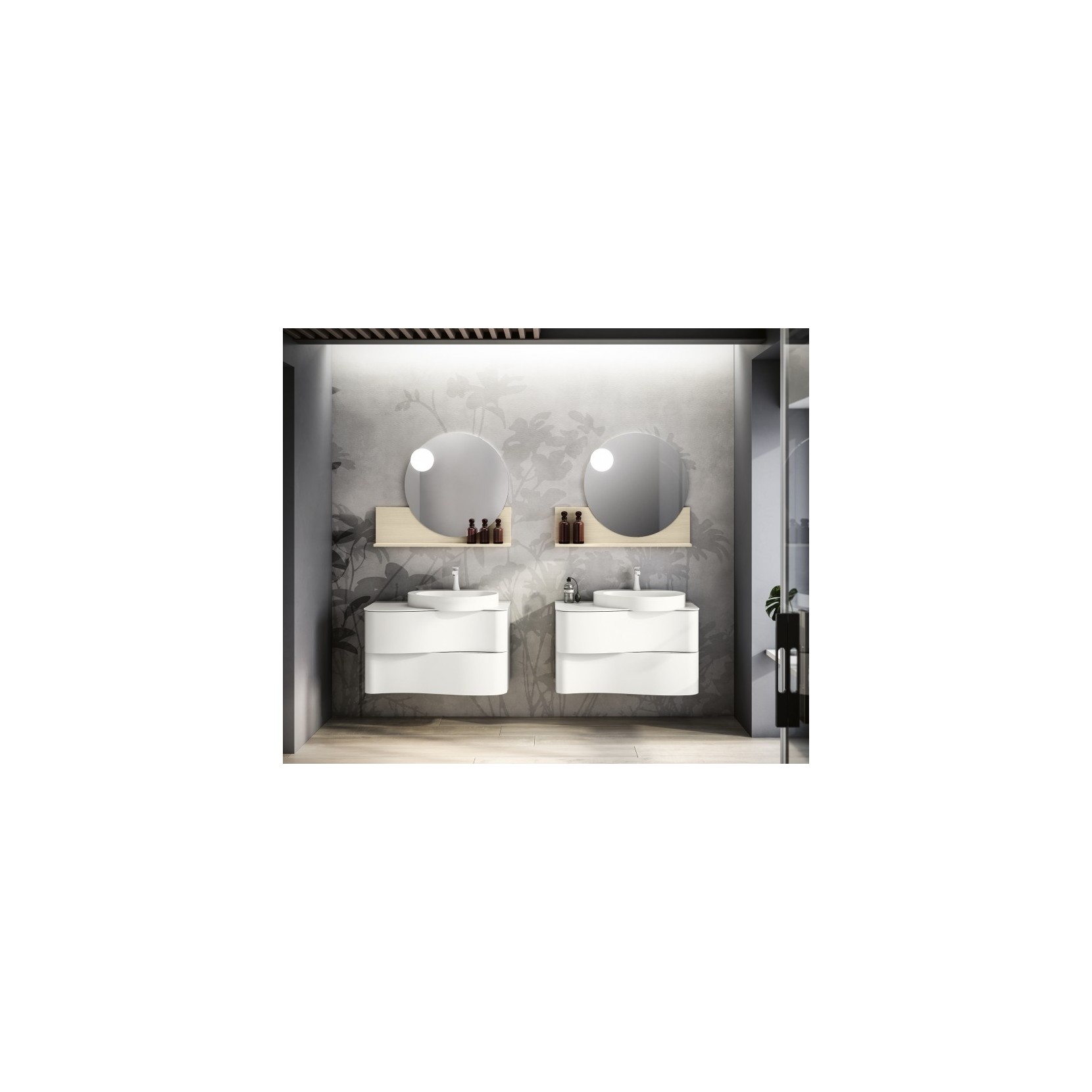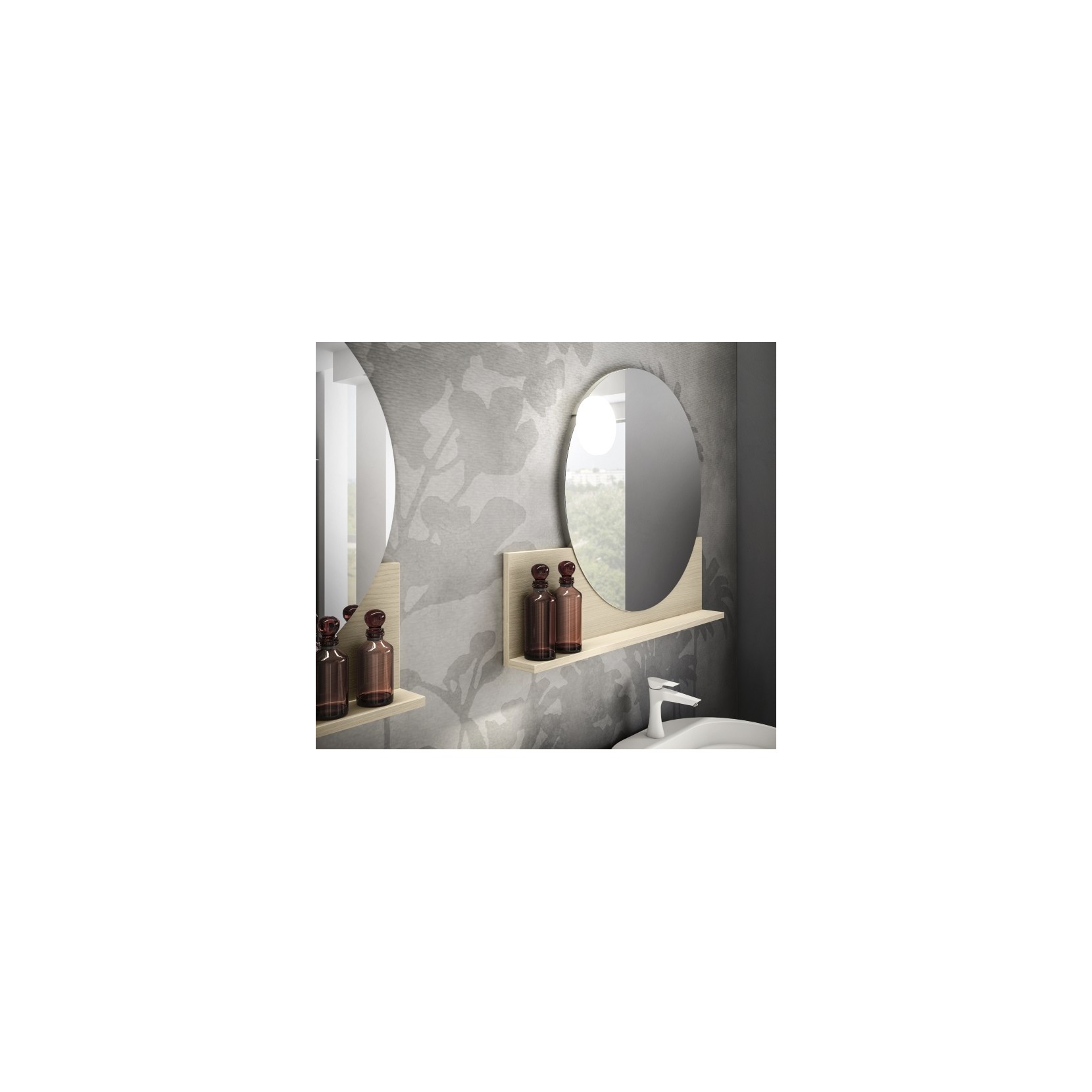Specchio Round con mensola in essenza 968 Rovere Puro e lampada Focus