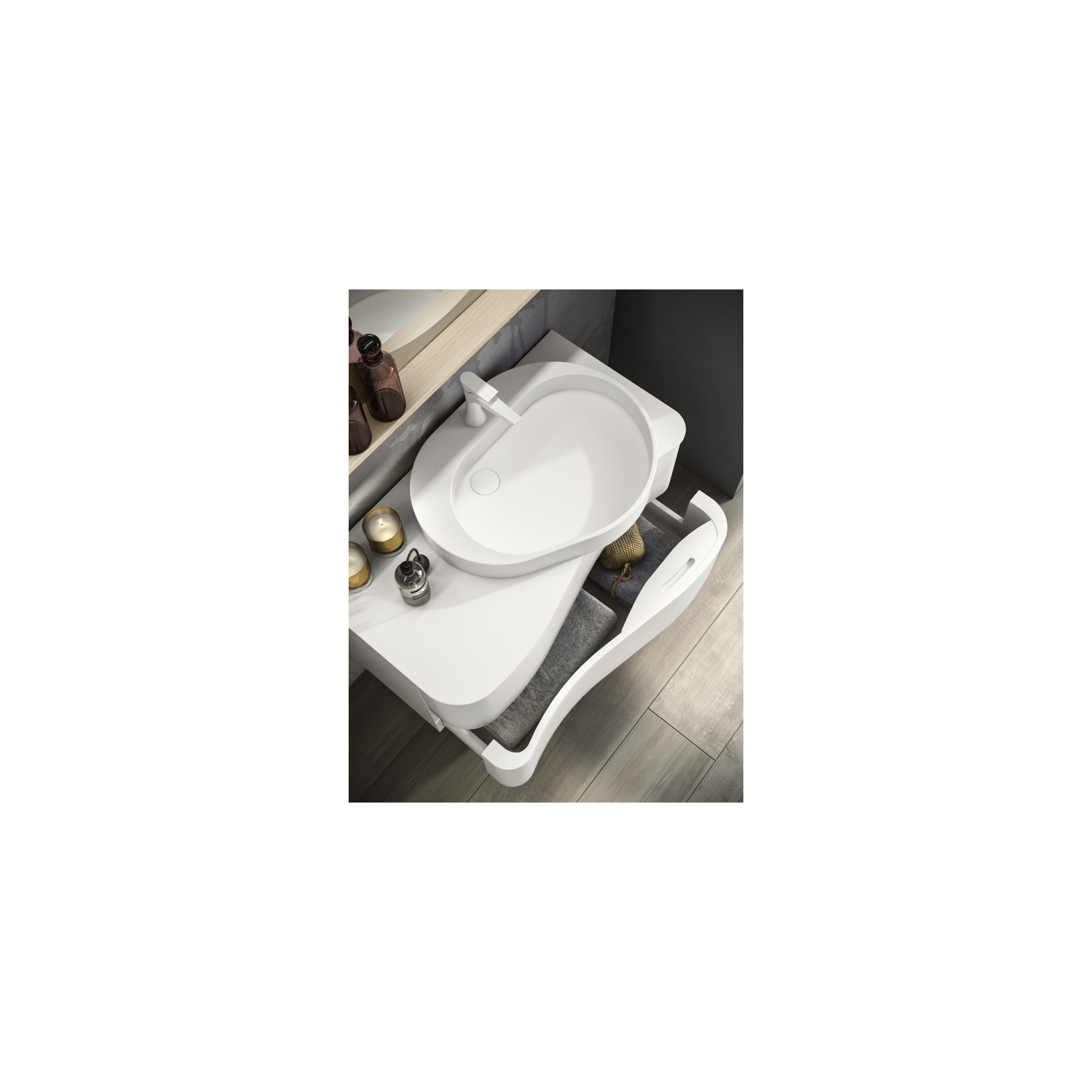 Portalavabo laccato opaco 017 Latte, top in Tecnolite bianco.