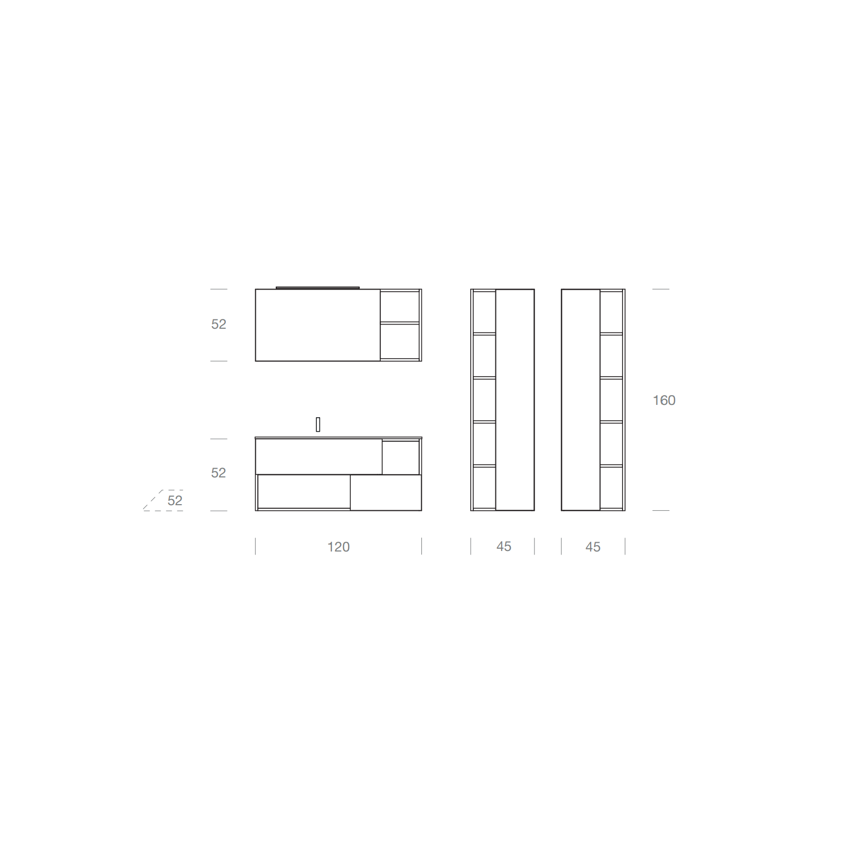 La composizione può essere richiesta in diverse misure o finiture, tramite preventivo.
