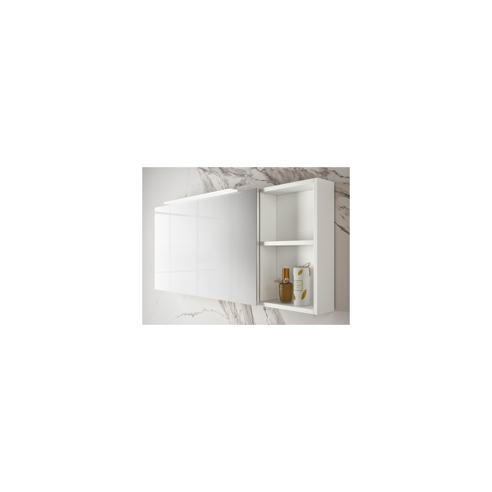 Specchio contenitore laccato opaco 017 Latte con lampada Slim L60 cm; colonne con ante in essenza 969 Rovere Silver