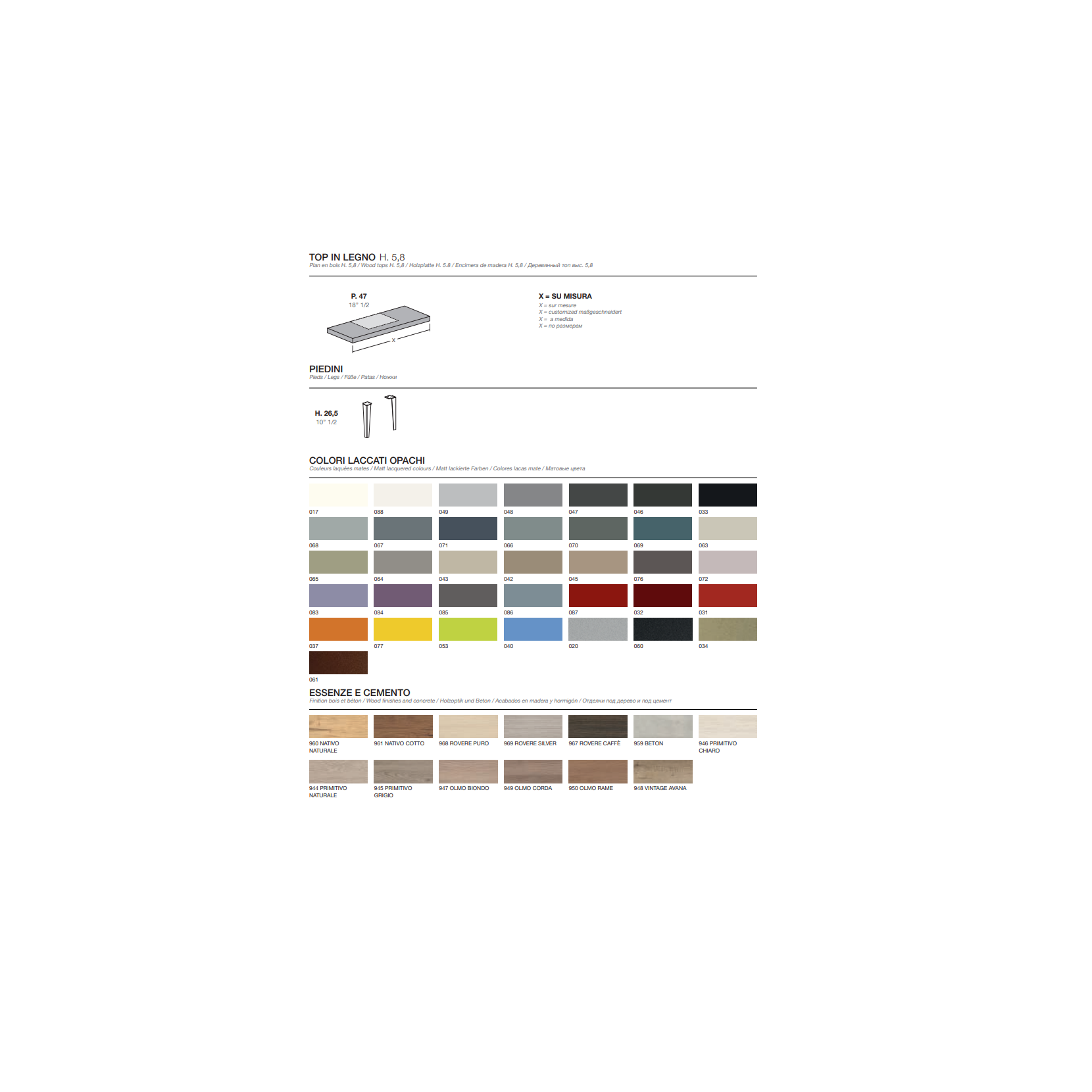 La composizione può essere richiesta in diverse misure o finiture, tramite preventivo.