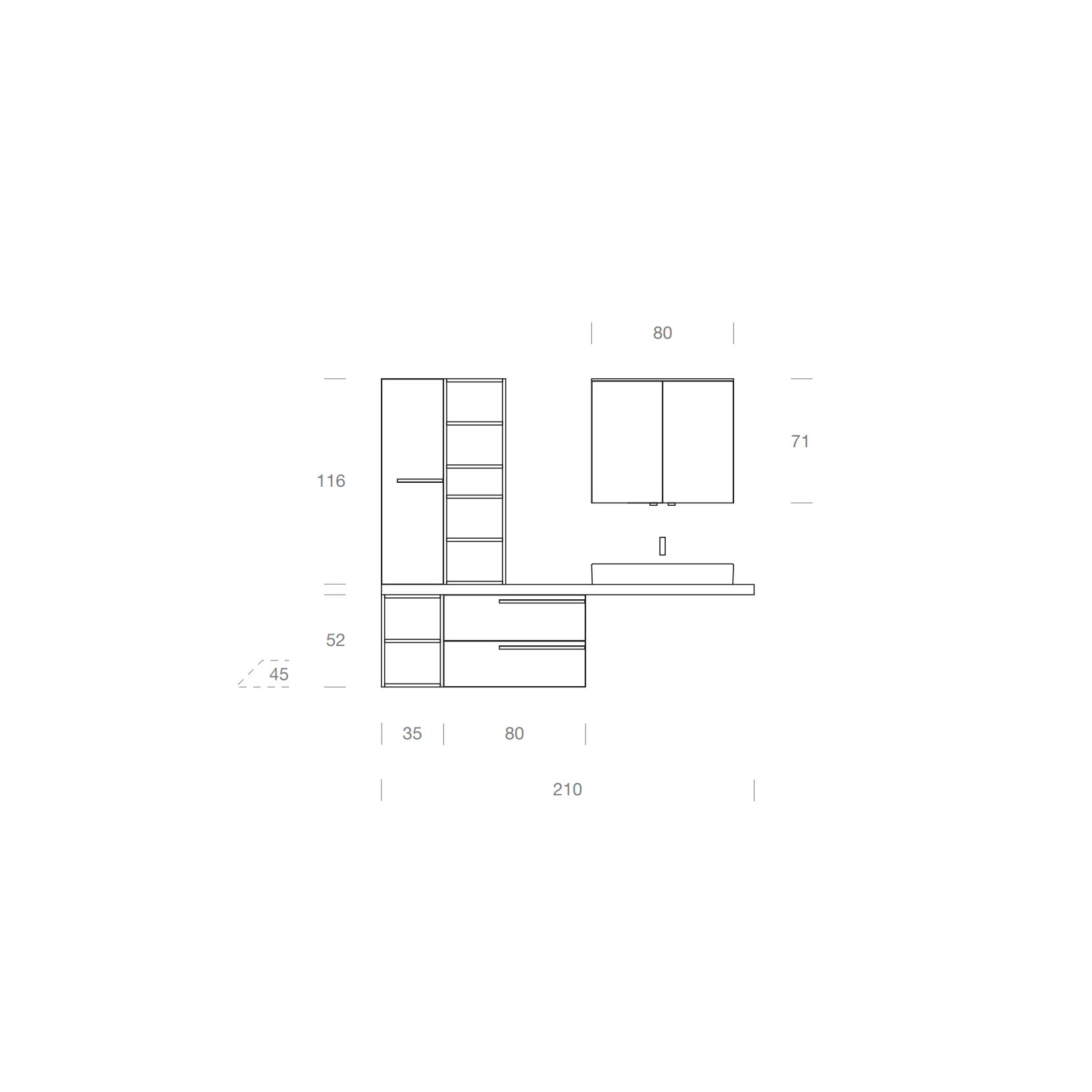 La composizione può essere richiesta in diverse misure o finiture, tramite preventivo.