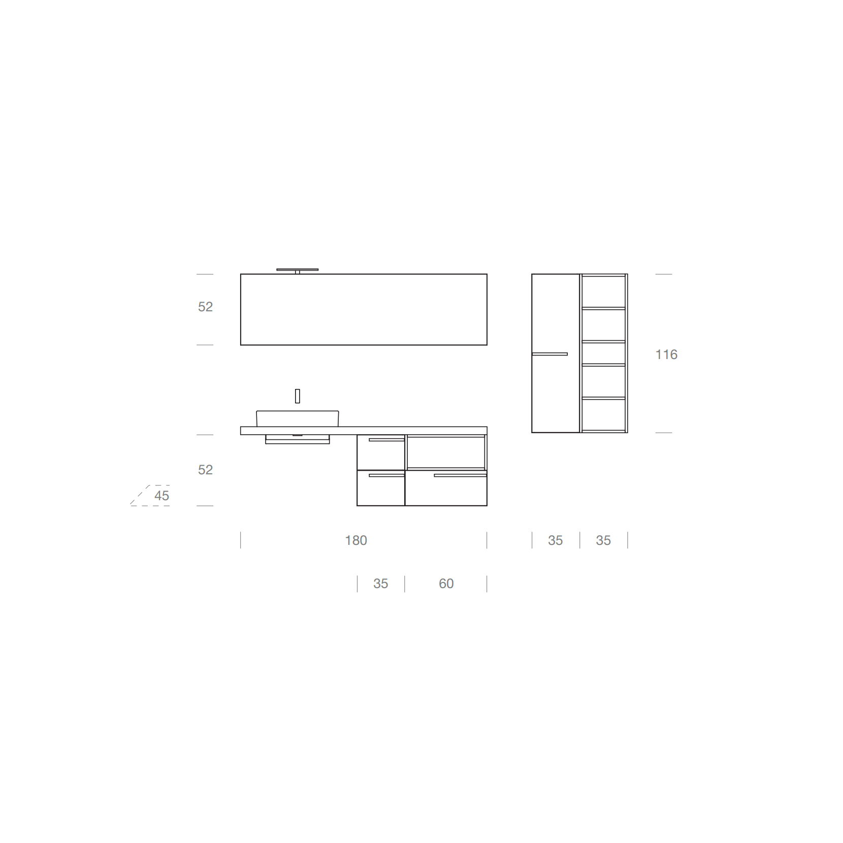 La composizione può essere richiesta in diverse misure o finiture, tramite preventivo.