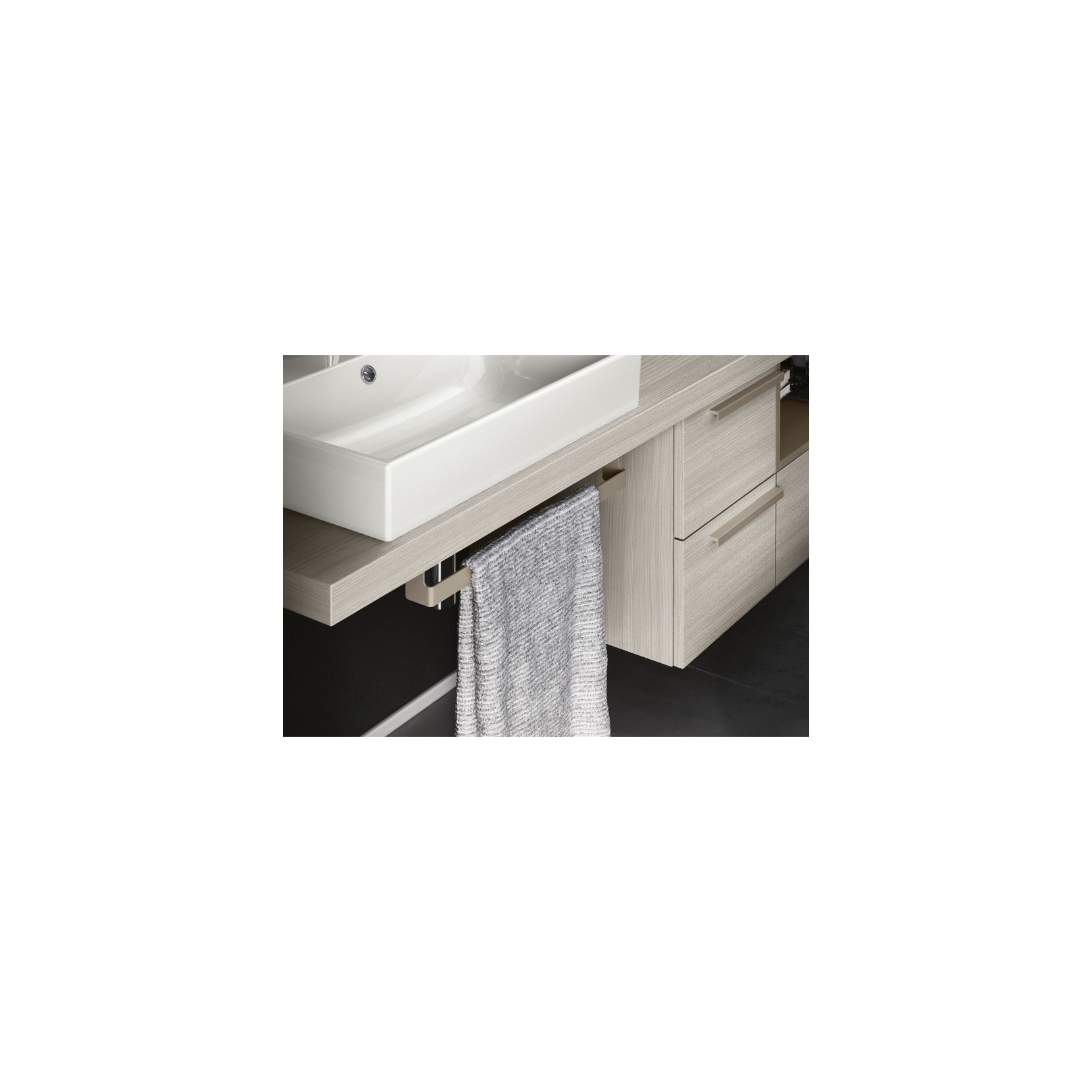 Basi e top in essenza 969 Rovere Silver con lavabo in ceramica in appoggio; base a giorno laccato opaco 045 Tortora.