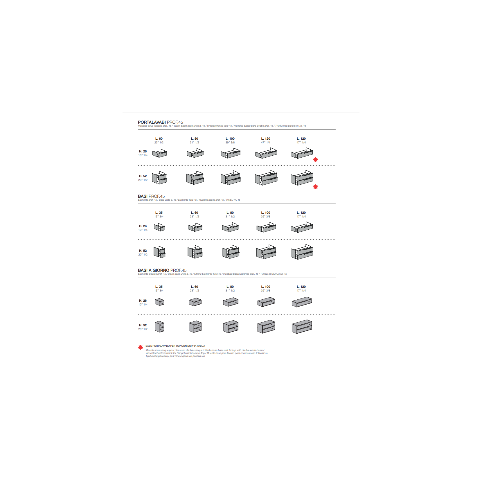 La composizione può essere richiesta in diverse misure o finiture, tramite preventivo.