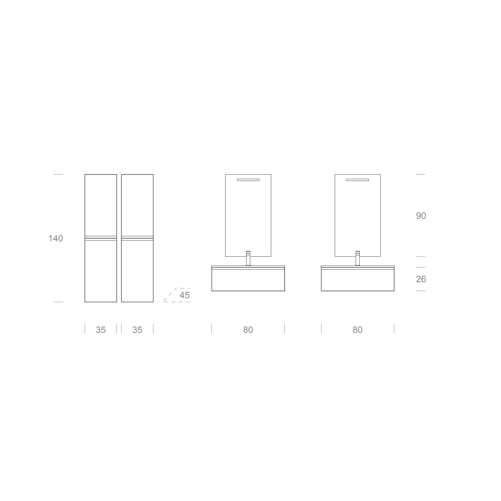 La composizione può essere richiesta in diverse misure o finiture, tramite preventivo.