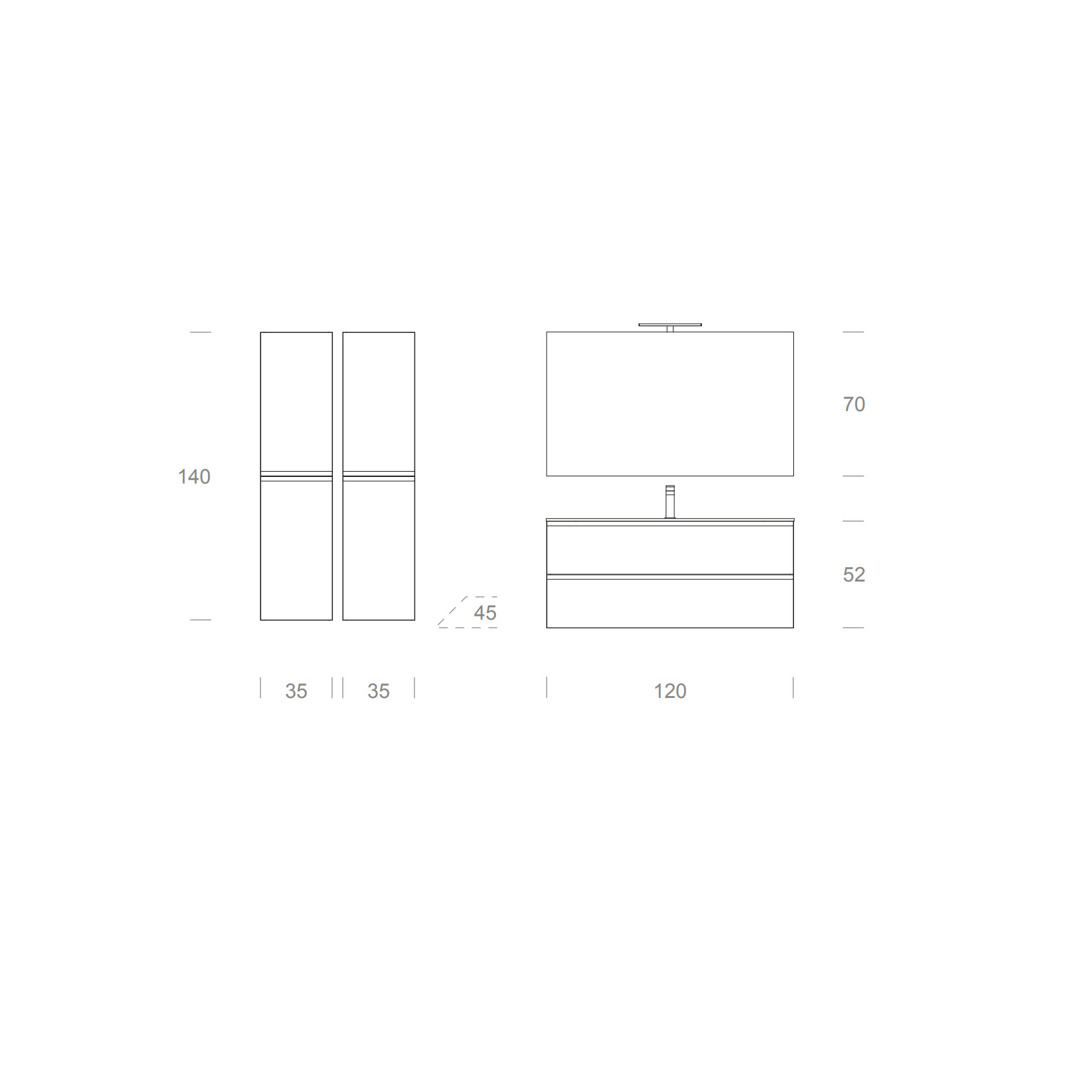 La composizione può essere richiesta in diverse misure o finiture, tramite preventivo.