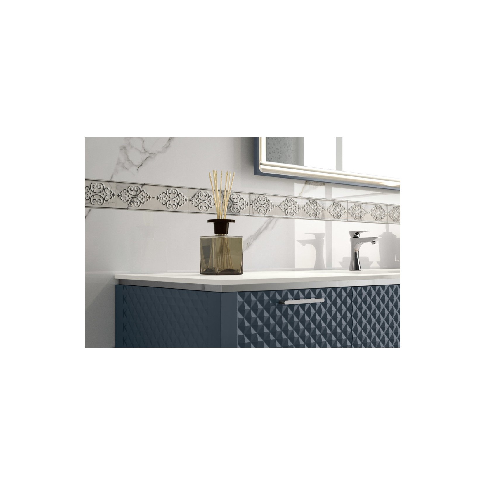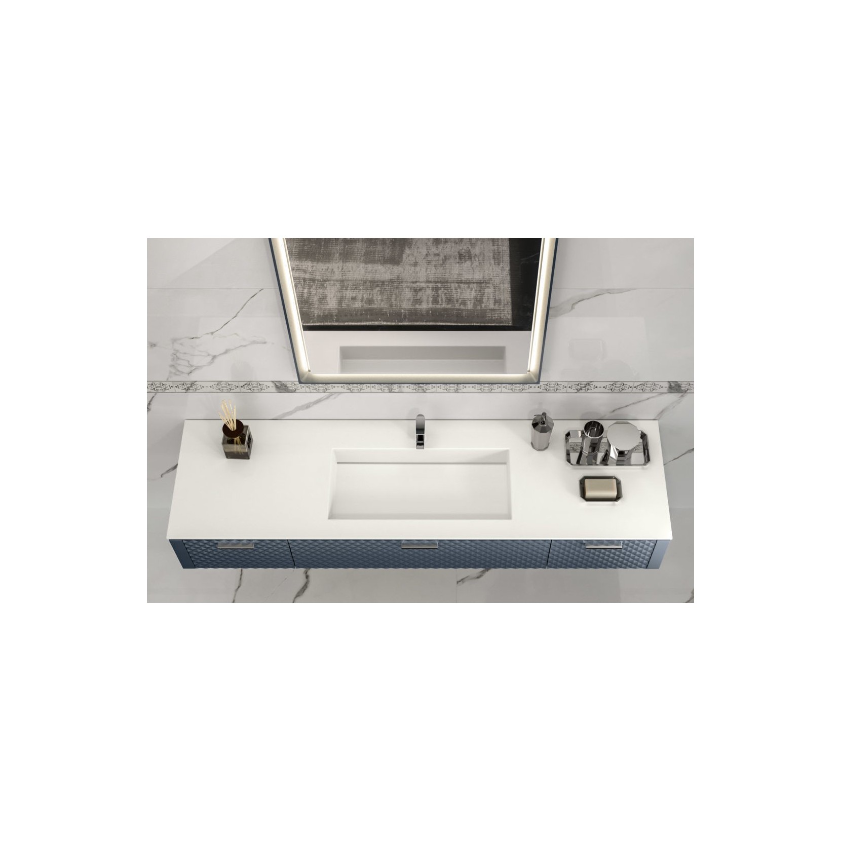 Base portalavabo, anta e fianchi Galles Zaffiro 071 lucido. Top in tecnolux bianco, sotto top e maniglie cromo.