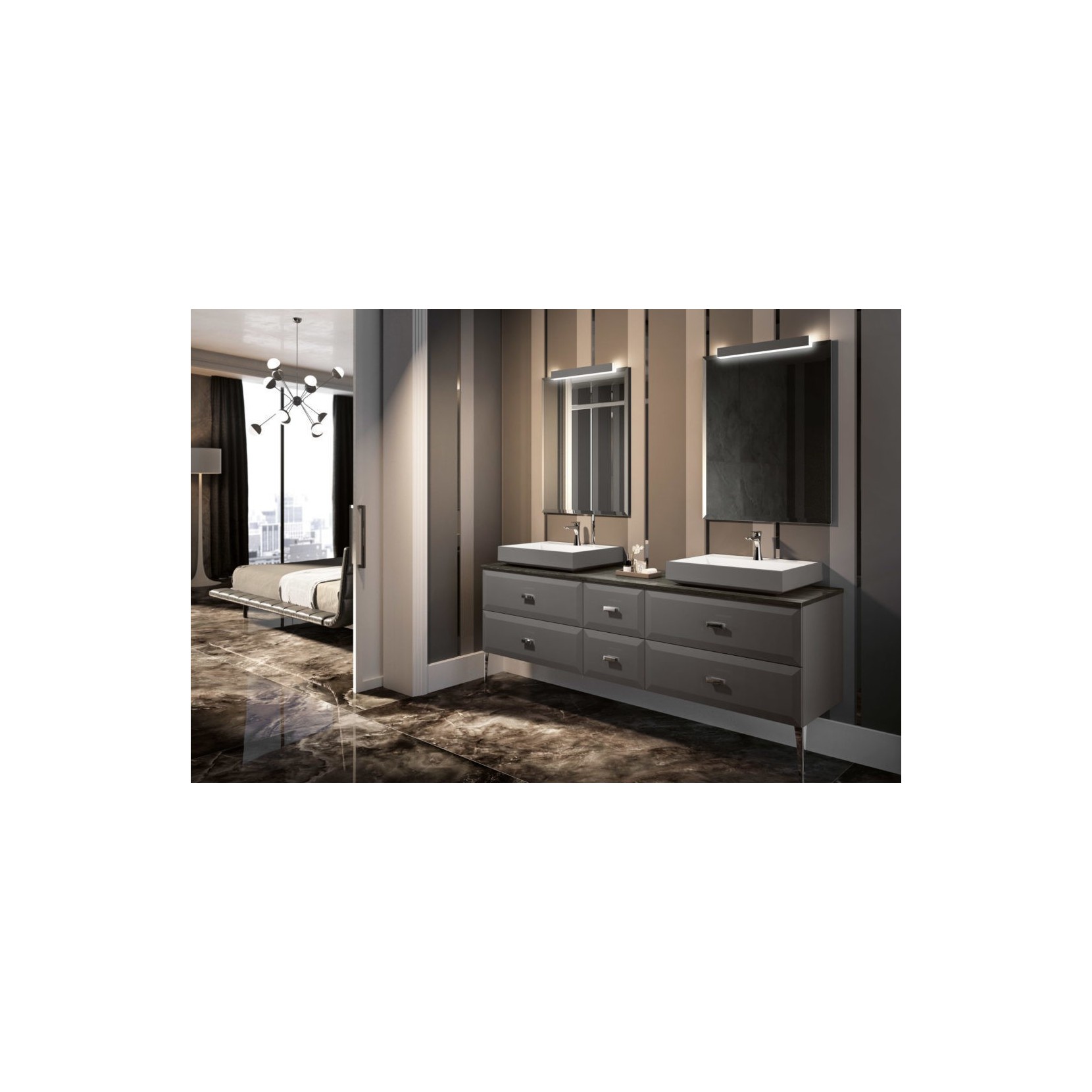 Lavabo finitura esterna Metropoli 085 opaco. Maniglie e piedini cromo. Specchi diamantati con lampade Cover finitura Metropoli 085 opaco.