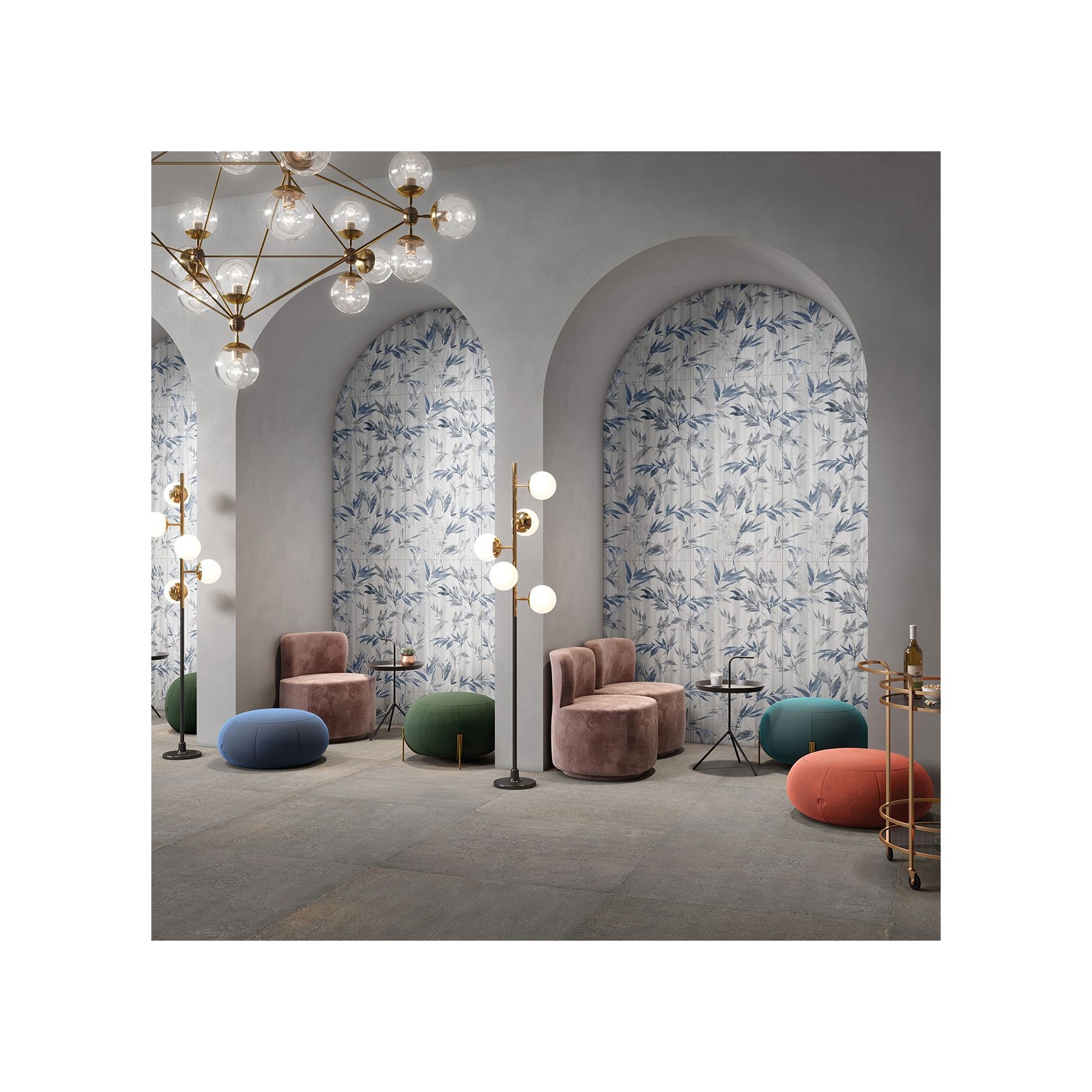 ShoWall nasce con una lavorazione a terzo fuoco, in formati 120x60 e 120x120, con decorazioni continue o componibili. La serie si presta ad ogni tipo di ambiente.