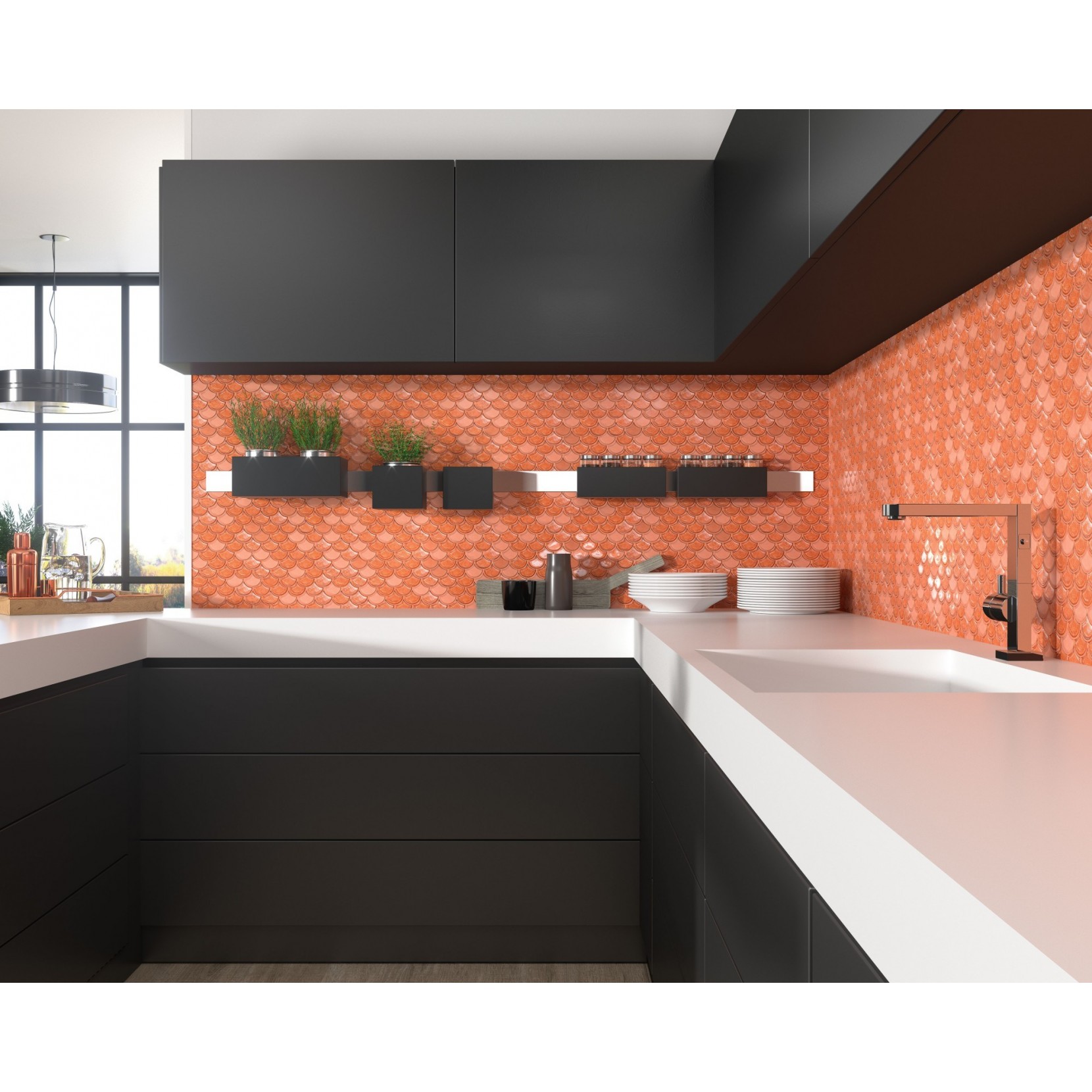Elegante mosaico in vetro nel colore corallo con finitura opaca e lucida.