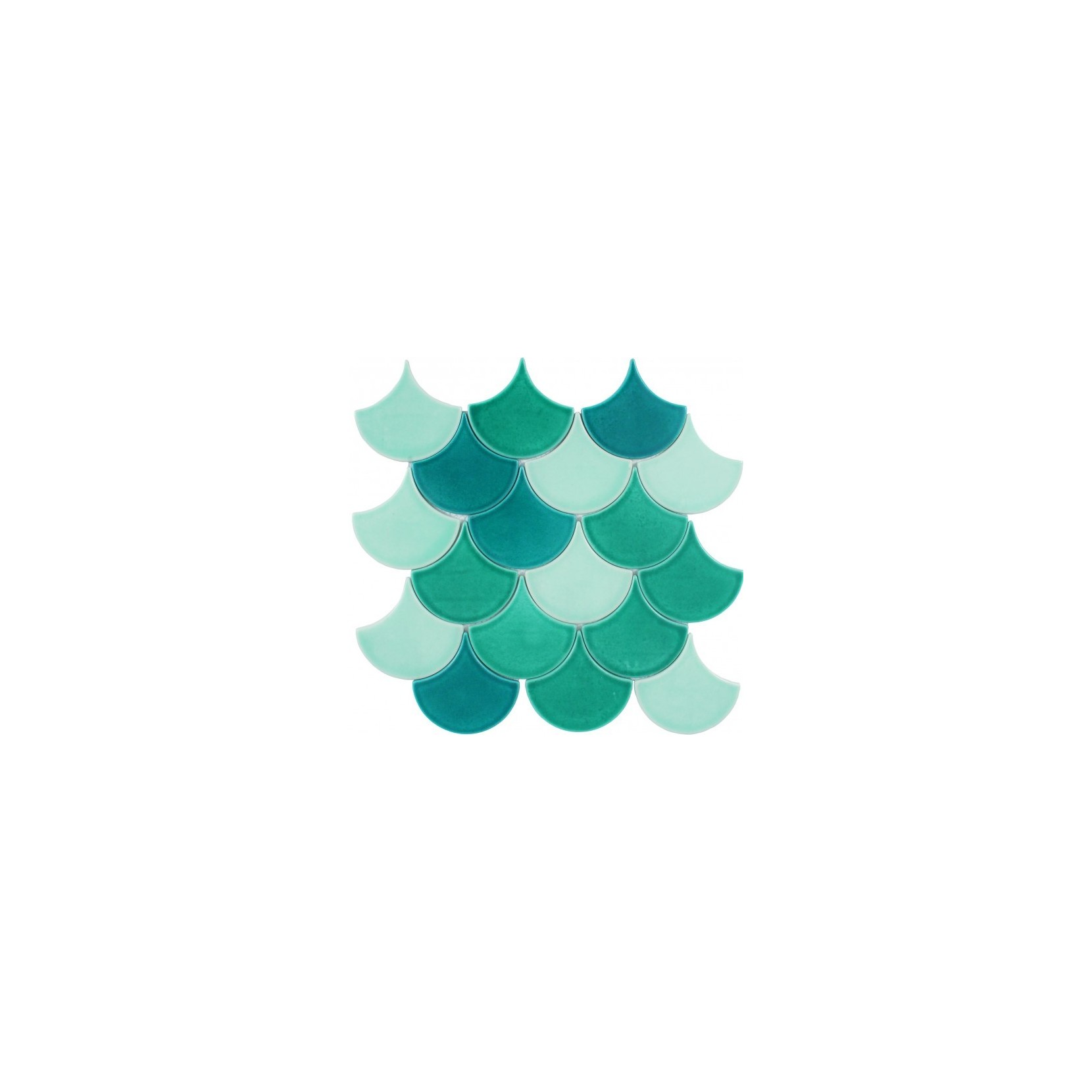 Mosaico in vetro colorato con finitura opaca, il verde è il colore prevalente.