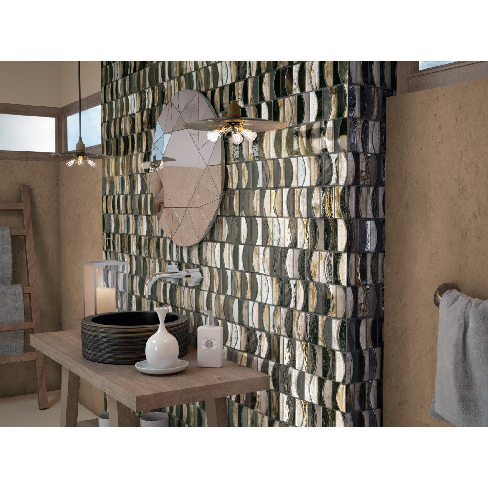 Megalos, Emphasis ed Eureka offrono uninfinità di possibilità: bellissimi mosaici, ceramica davanguardia, volumi incredibili, eleganti lavandini per decorare ambienti sia privati sia pubblici e dotarli di un carattere distintivo e speciale.