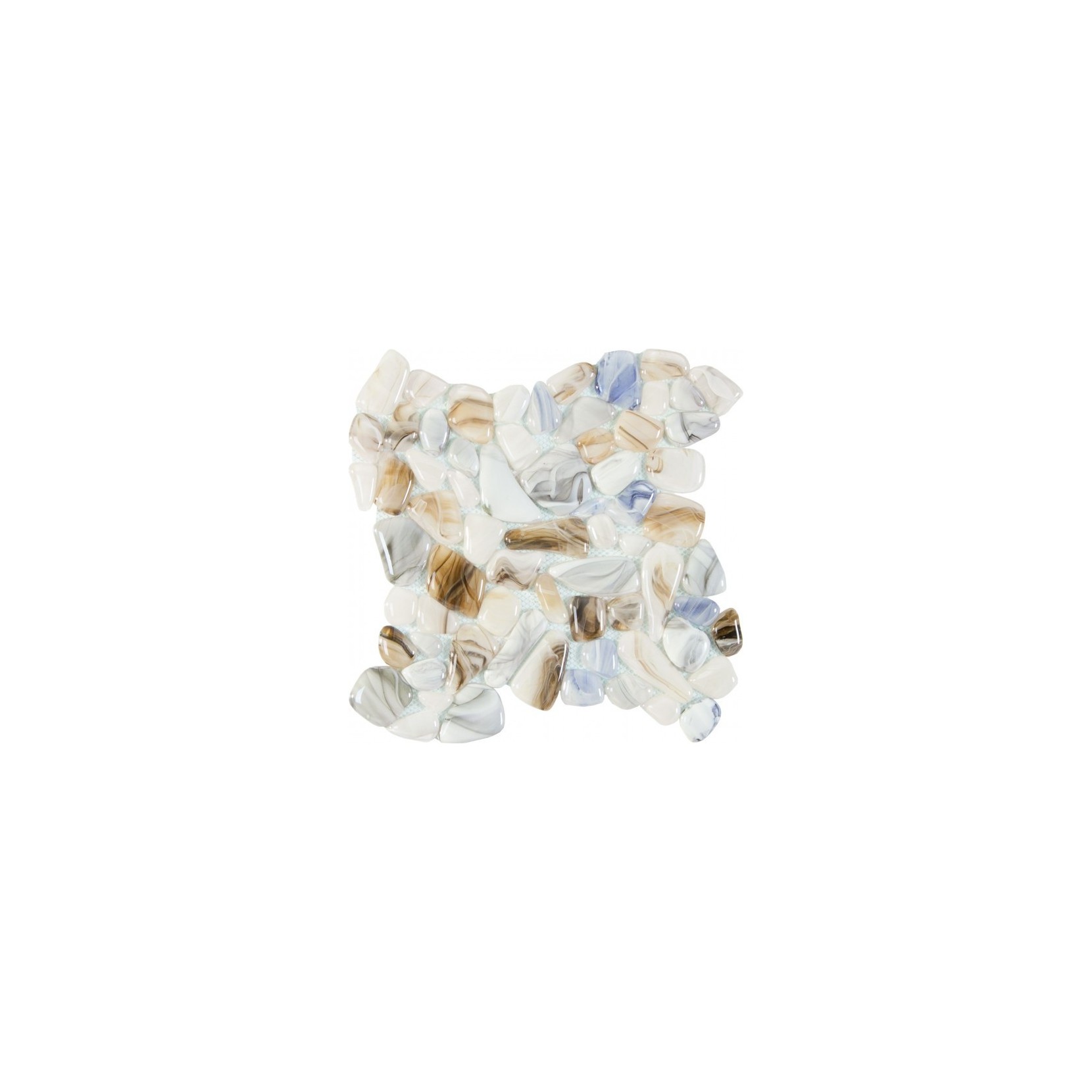 Un elegante mosaico dalle forme irregolari e dalla finitura lucida.
