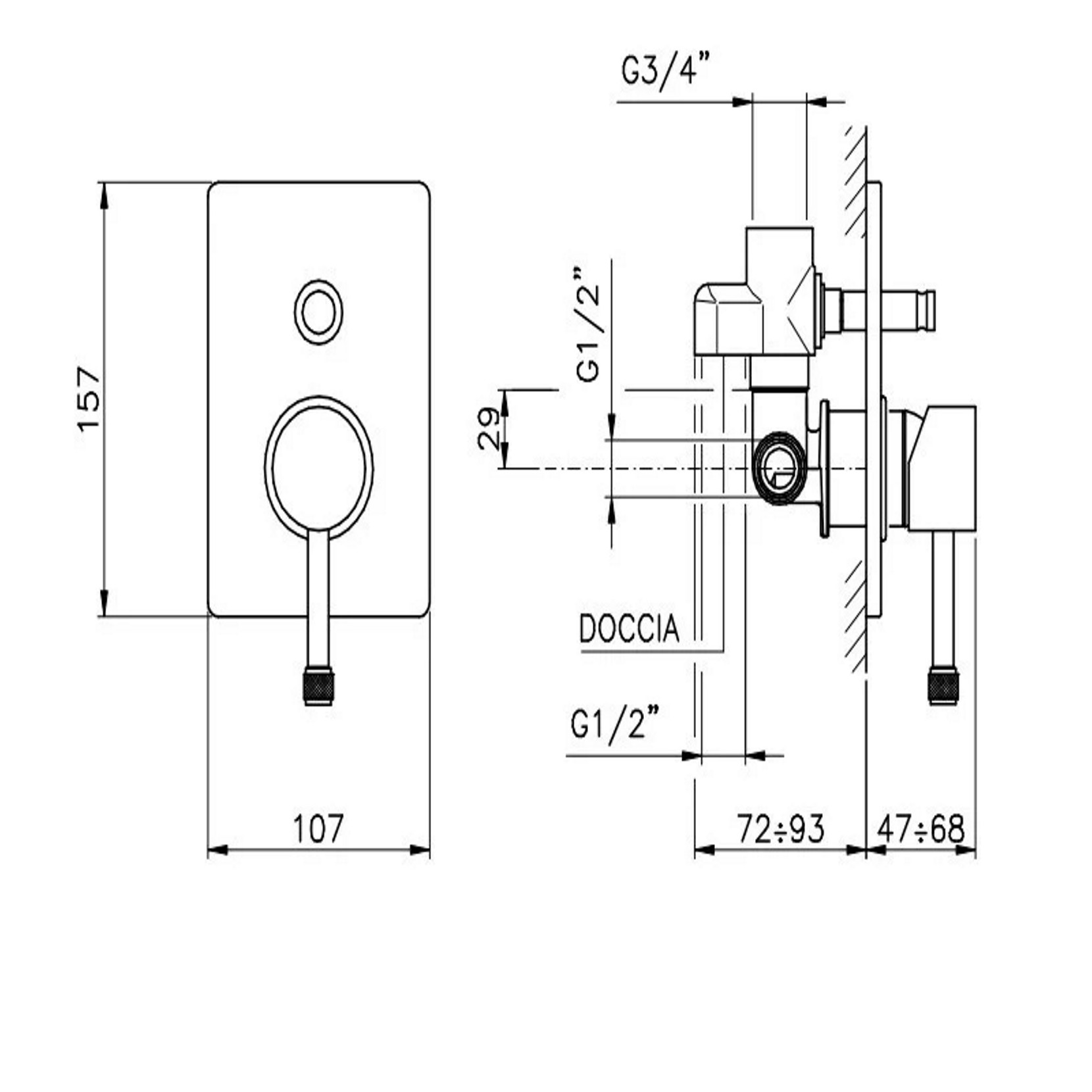 Officina Nicolazzi Monocomando Arena Leva, Monocomando doccia incasso con deviatore