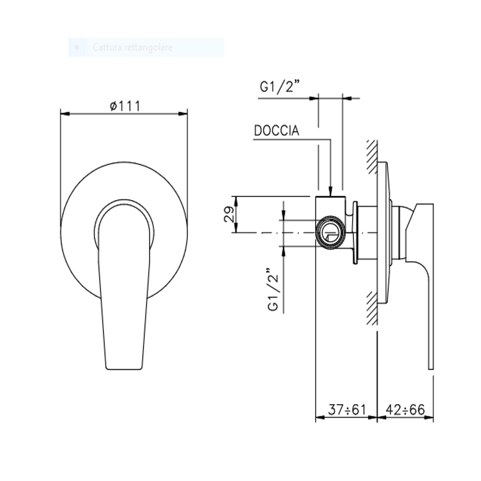 Officina Nicolazzi Monocomando Jungfrau, Monocomando doccia incasso