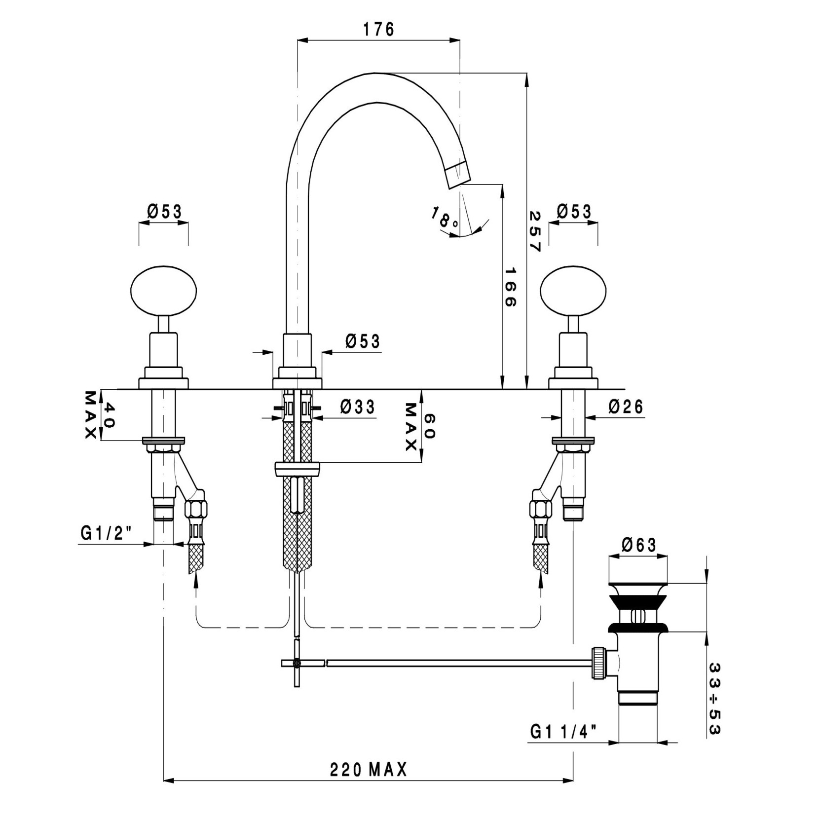Disponibile anche nella versione di batteria lavabo senza scarico, quest'ultimo subisce una variazione di prezzo.