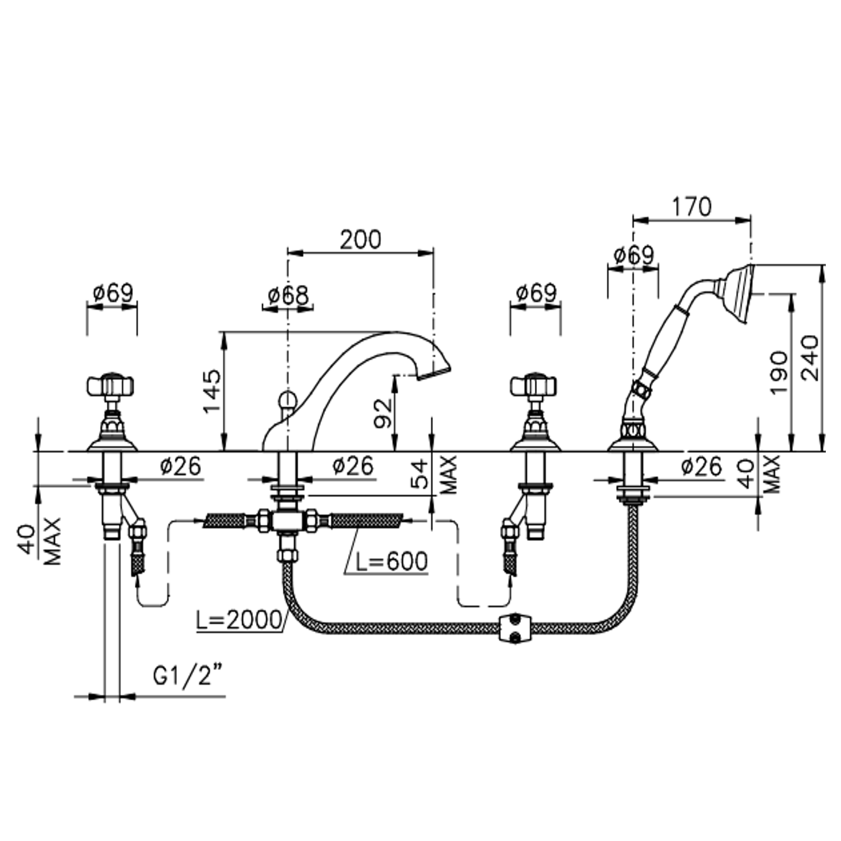 Officina Nicolazzi Tradizionali, Gruppo bordo vasca 4 fori