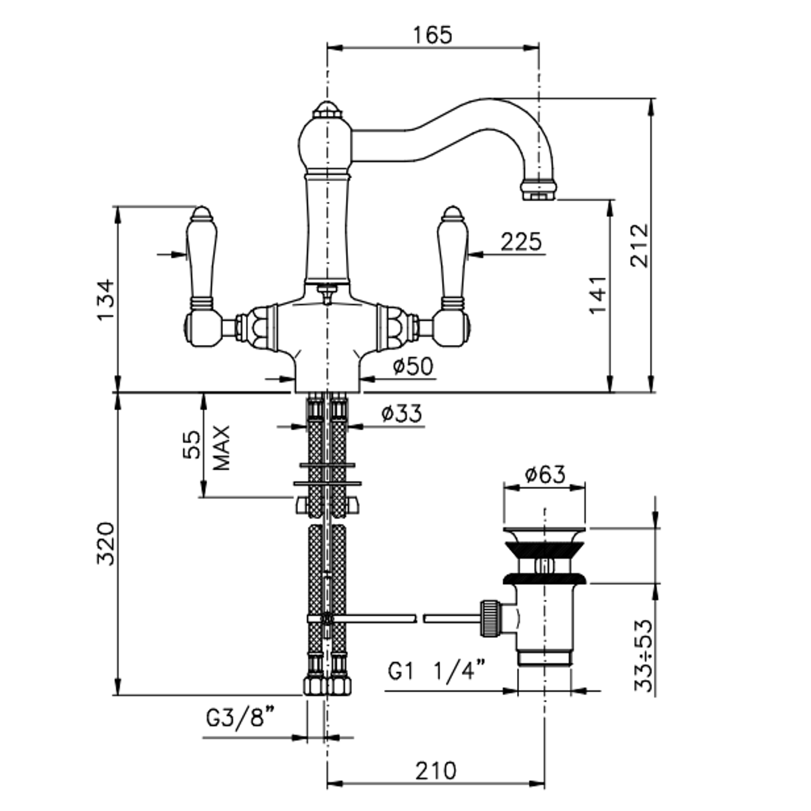 Officina Nicolazzi Tradizionale, Monoforo lavabo scarico automatico, canna girevole