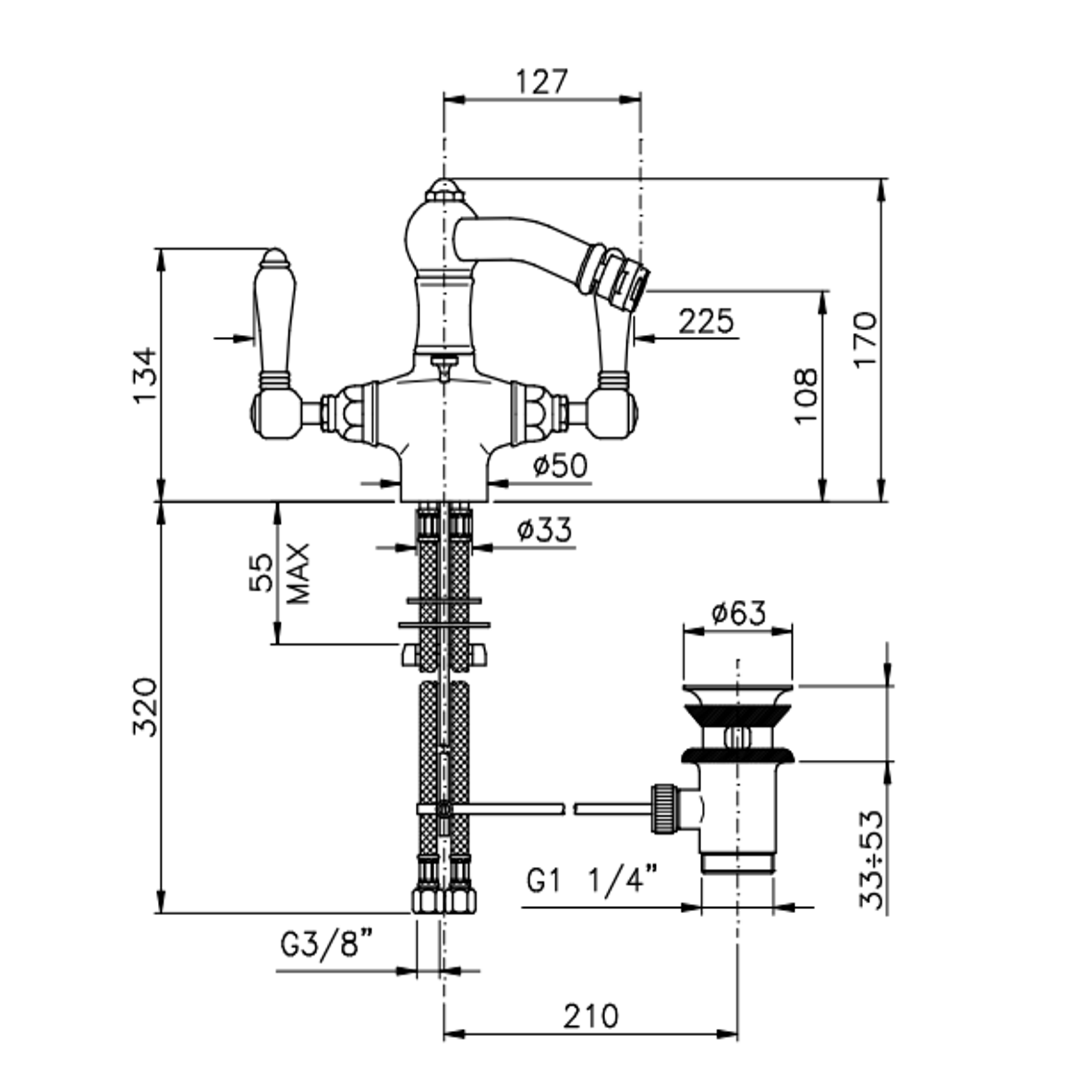 Officina Nicolazzi Tradizionale, Batteria lavabo scarico automatico