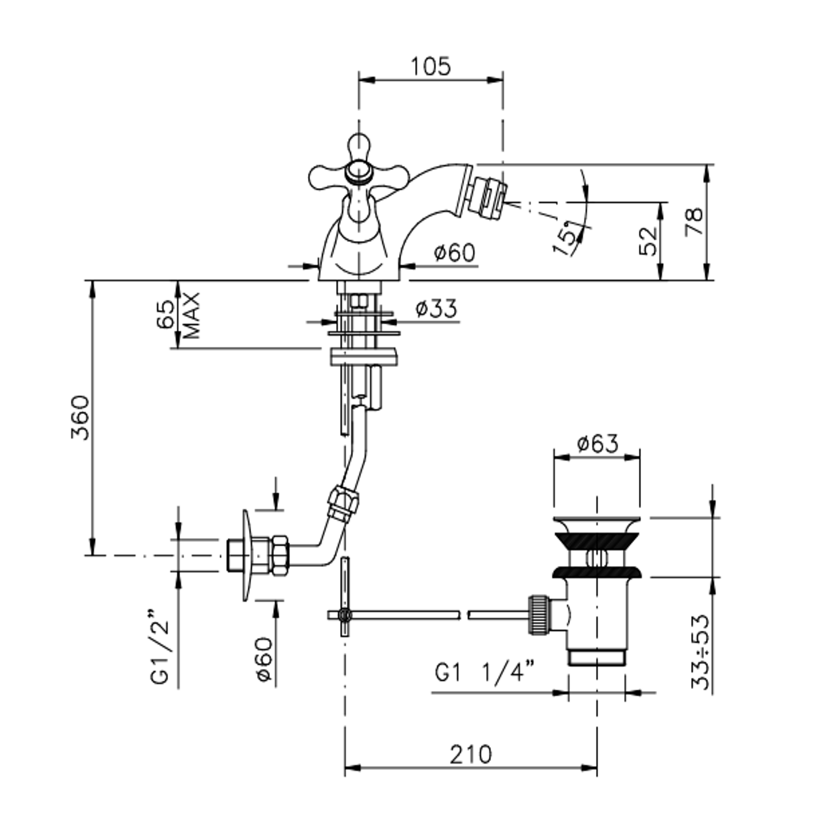 Officina Nicolazzi Nuova Brenta, Monoforo bidet scarico automatico