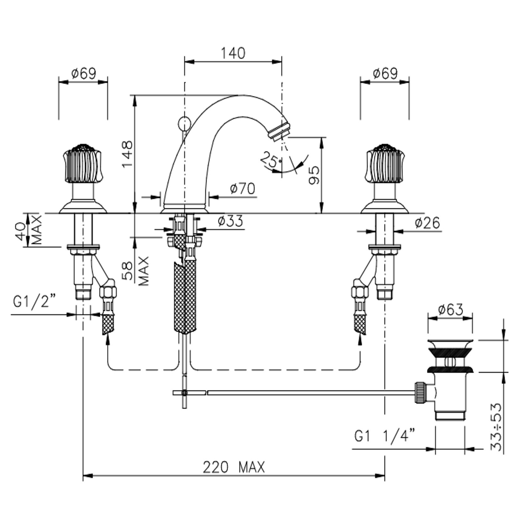 Officina Nicolazzi Onice, Batteria lavabo scarico automatico