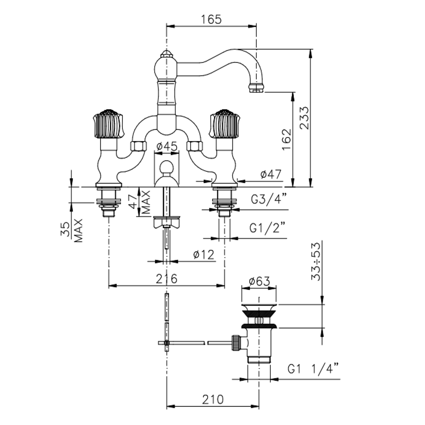Officina Nicolazzi Cristallo di Rocca, Monoforo bidet scarico automatico, canna girevole