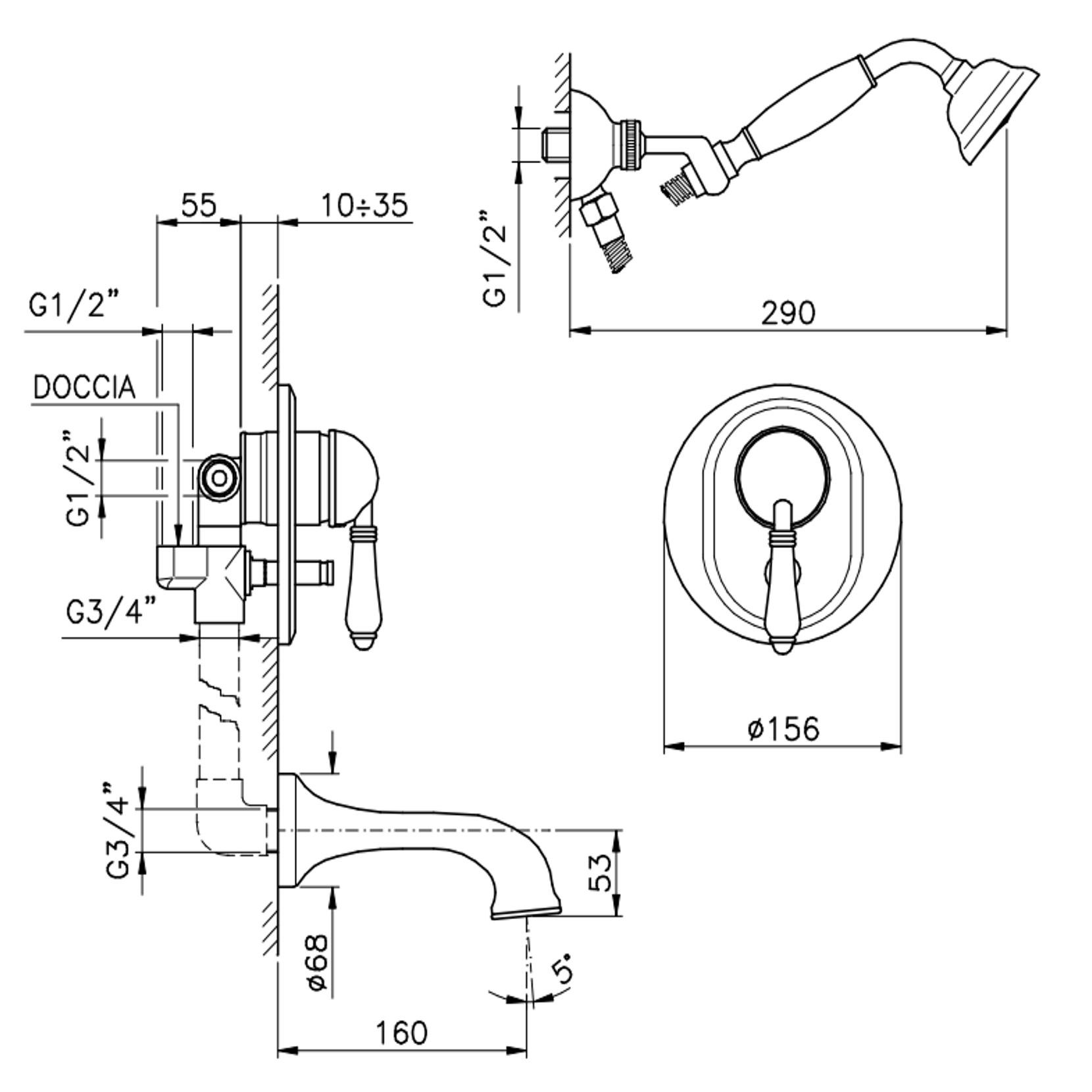 Officina Nicolazzi Monocomando Classico, Monocomando vasca incasso