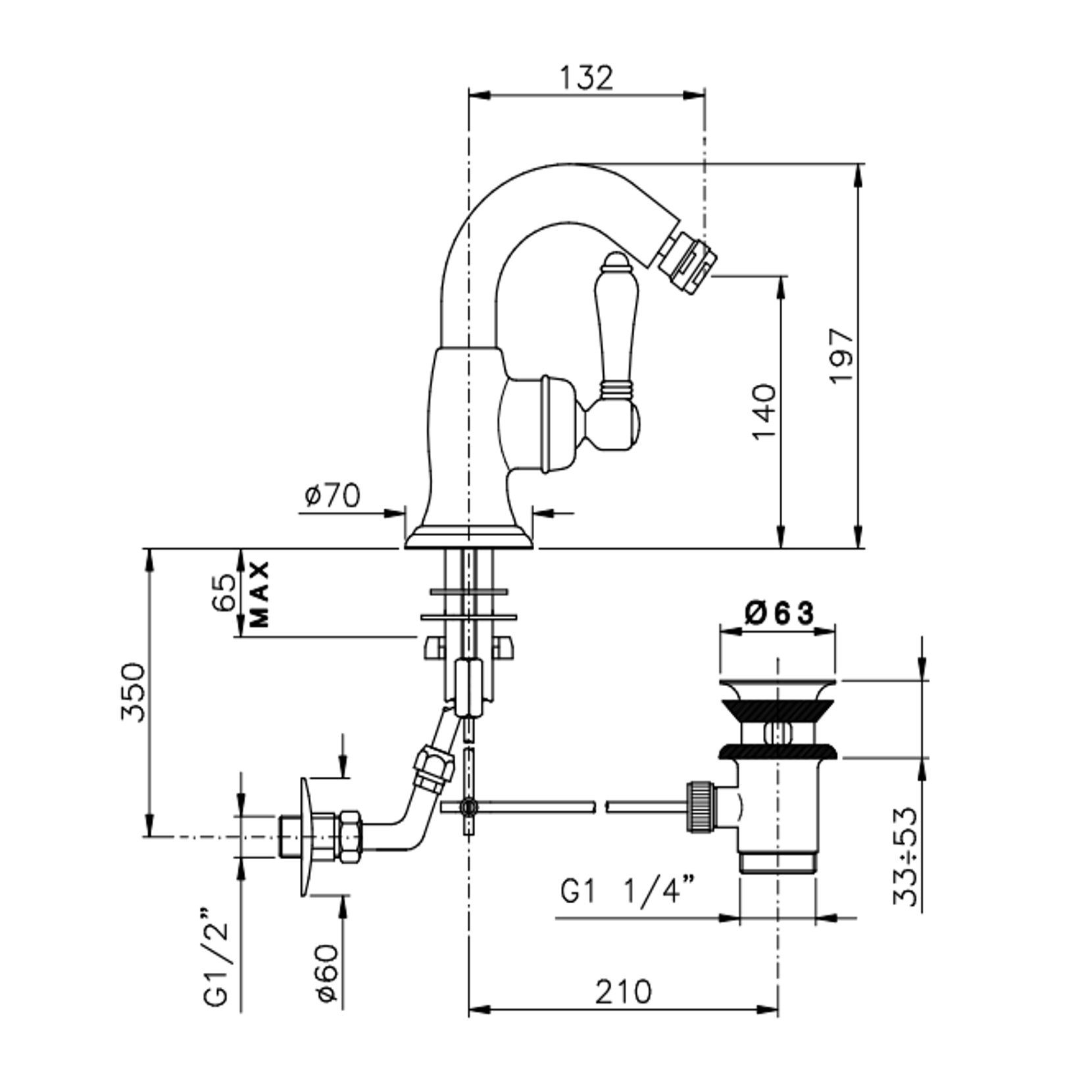 Officina Nicolazzi Monocomando Classico, Monocomando per bidet con scarico automatico