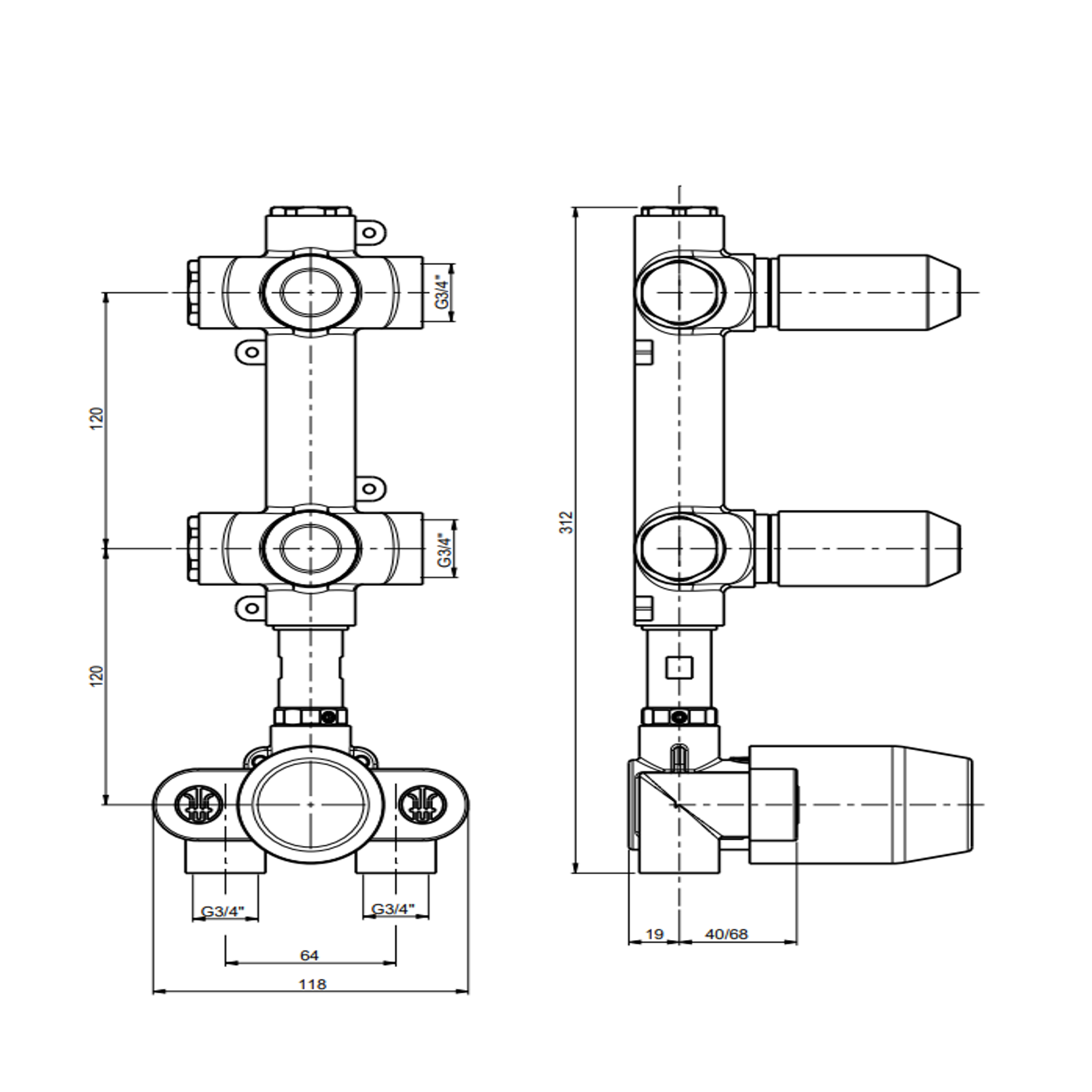F.lli Frattini Pepe XLS 316 Inox, Miscelatore incasso termostatico 2 vie