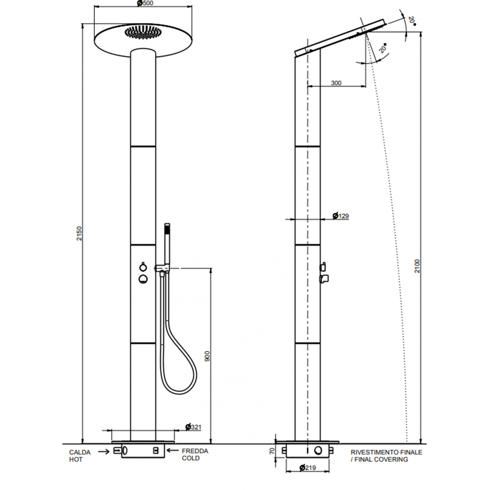 F.lli Frattini Docce Inox, Colonna doccia da interno