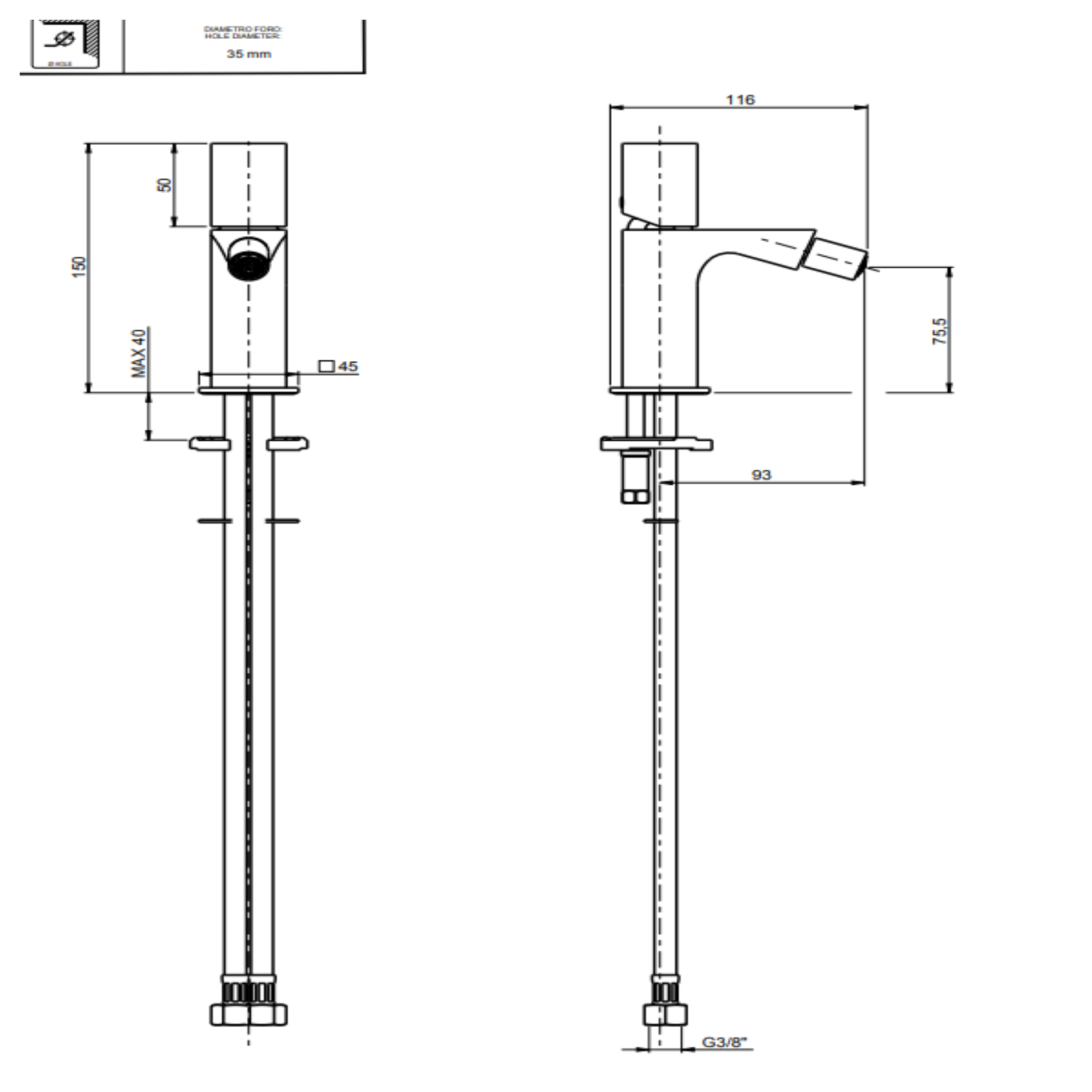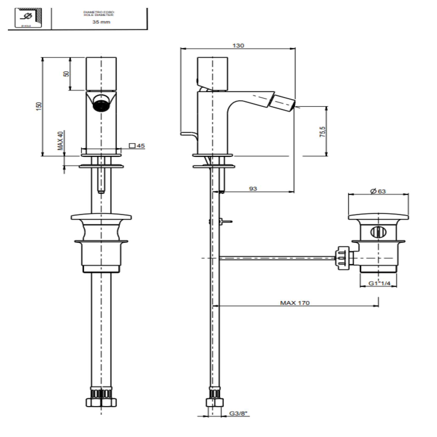 F.lli Frattini Narciso S, Monocomando per bidet con scarico 1”1/4