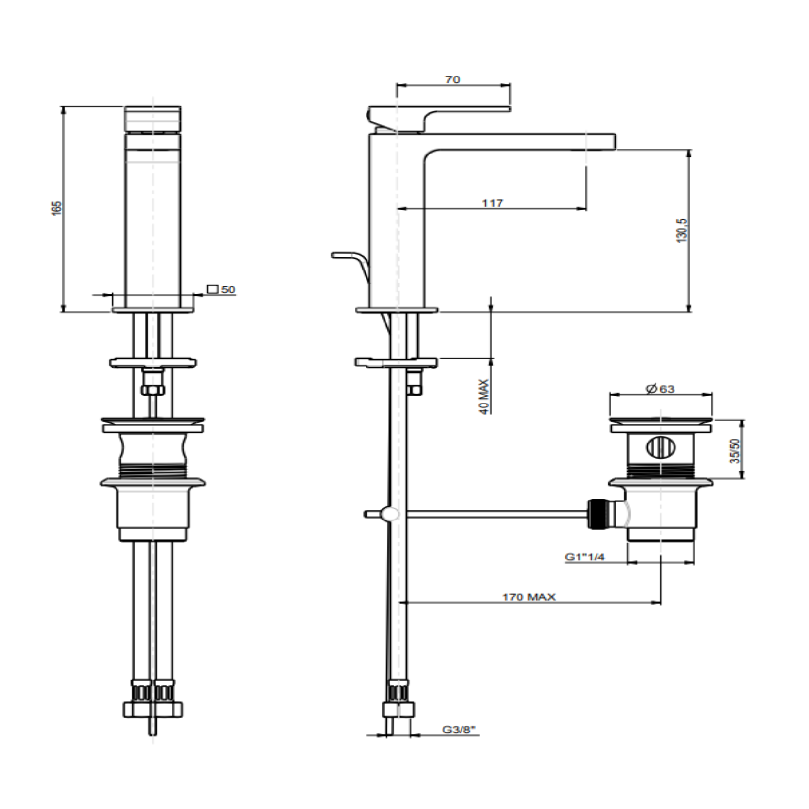 Officina Nicolazzi Vita, Monocomando per lavabo con scarico 1"1/4"