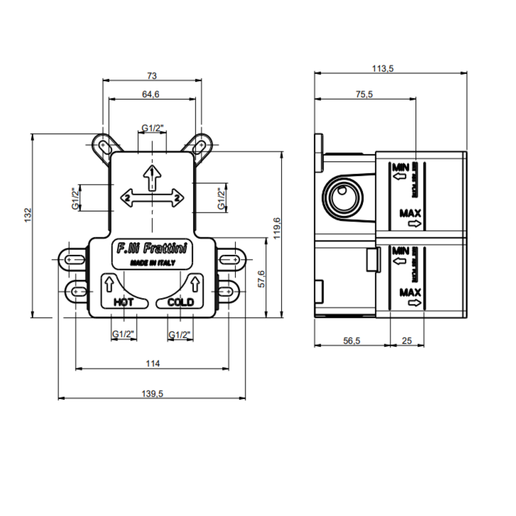 F.lli Frattini Vita, Monocomando incasso con deviatore a 2 vie, piastra ABS