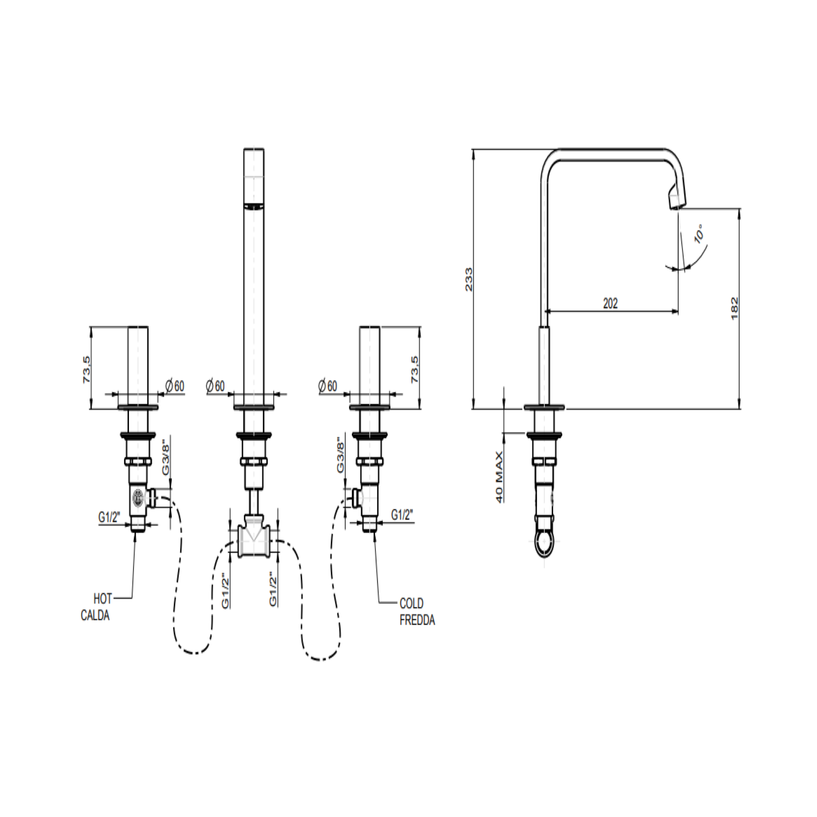 Officina Nicolazzi Dames Anglaises, Gruppo lavello canna girevole c/doccia estraibile