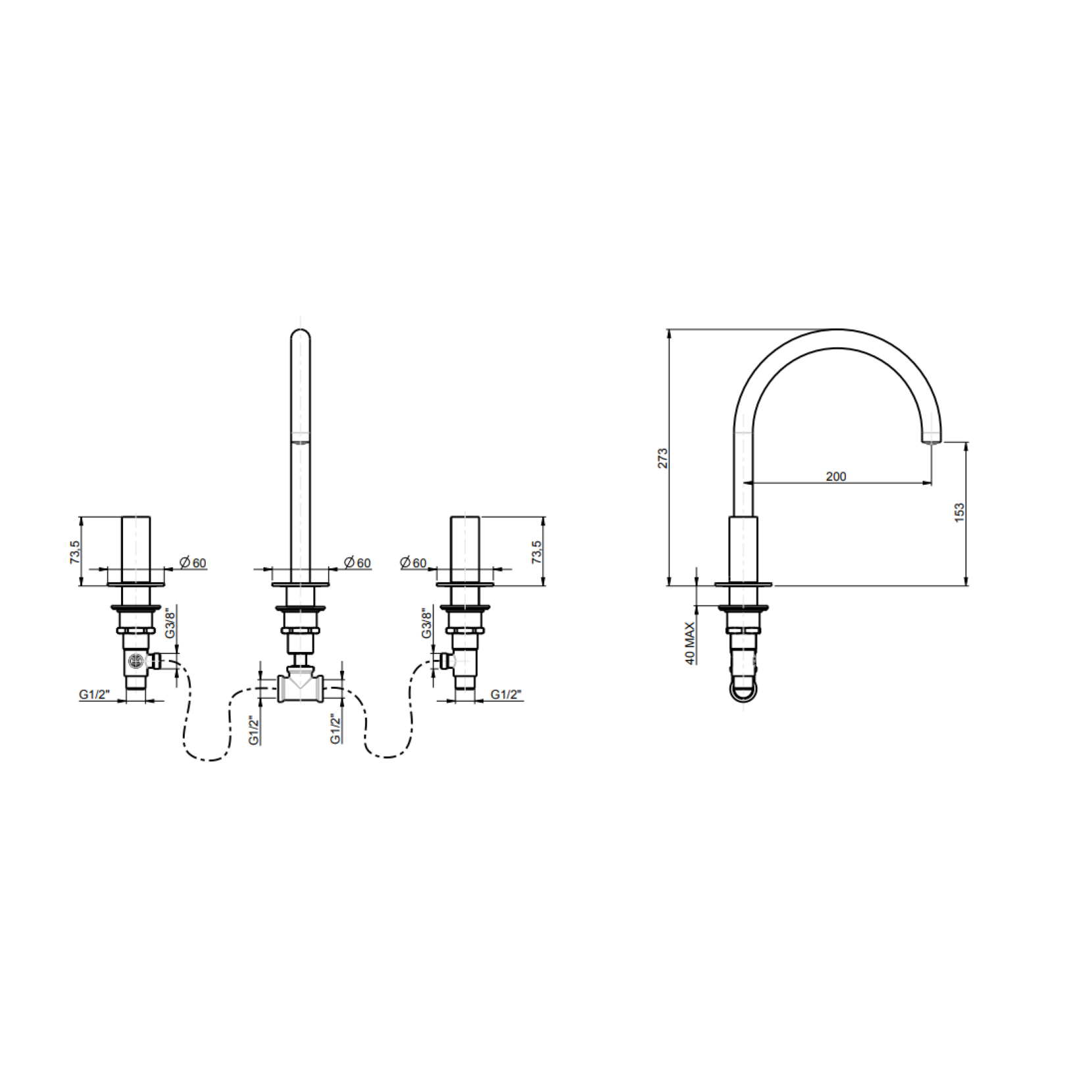 F.lli Frattini Pepe XL, Batteria lavabo con bocca alta fissa