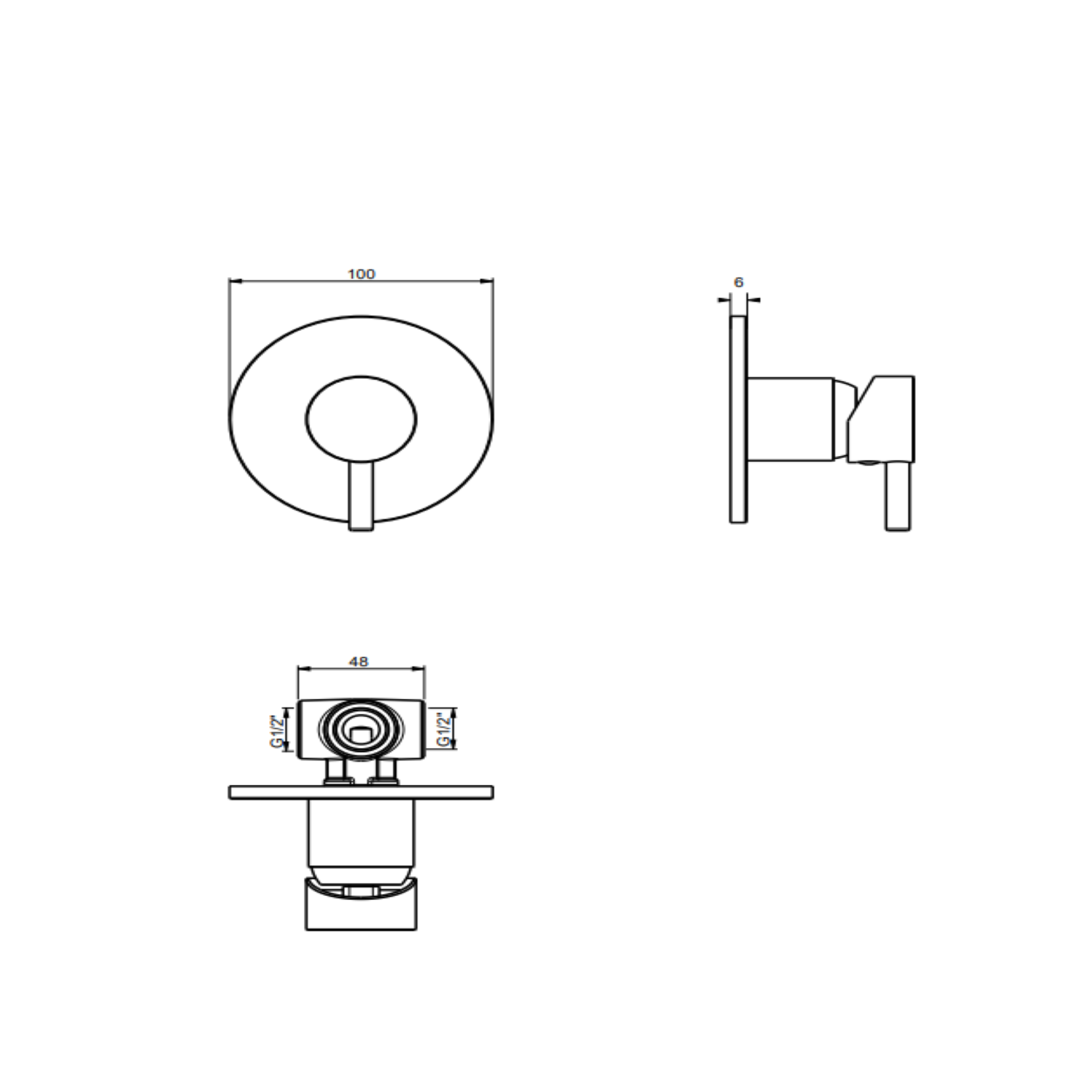 F.lli Frattini Pepe XL, Monocomando incasso per doccia, piastra in ABS