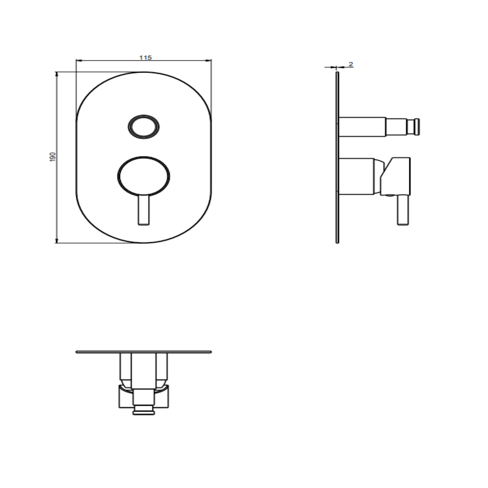 F.lli Frattini Pepe XL, Monocomando incasso con deviatore, piastra in ottone