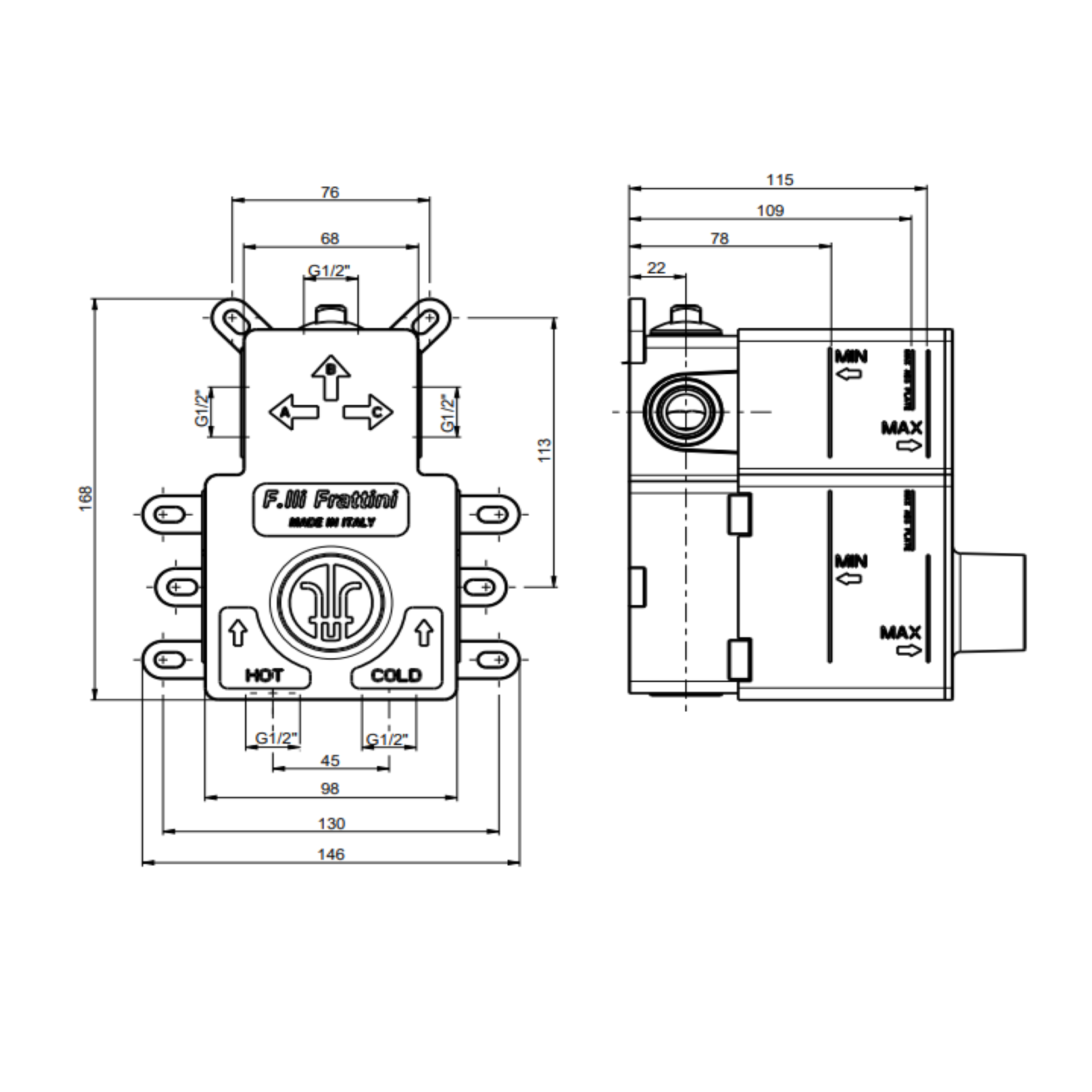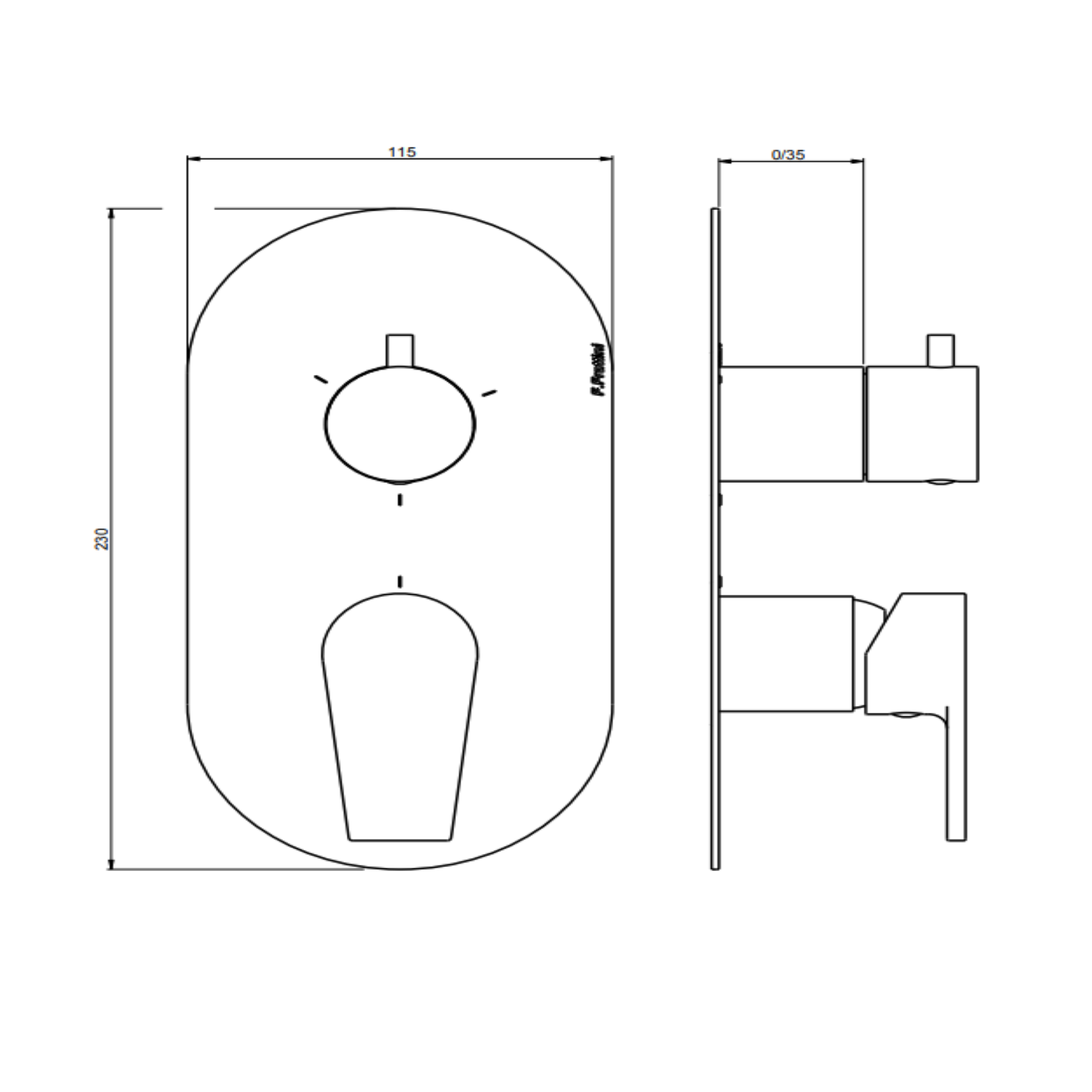 F.lli Frattini Gaia, Monocomando incasso 3 vie, piastra in ottone