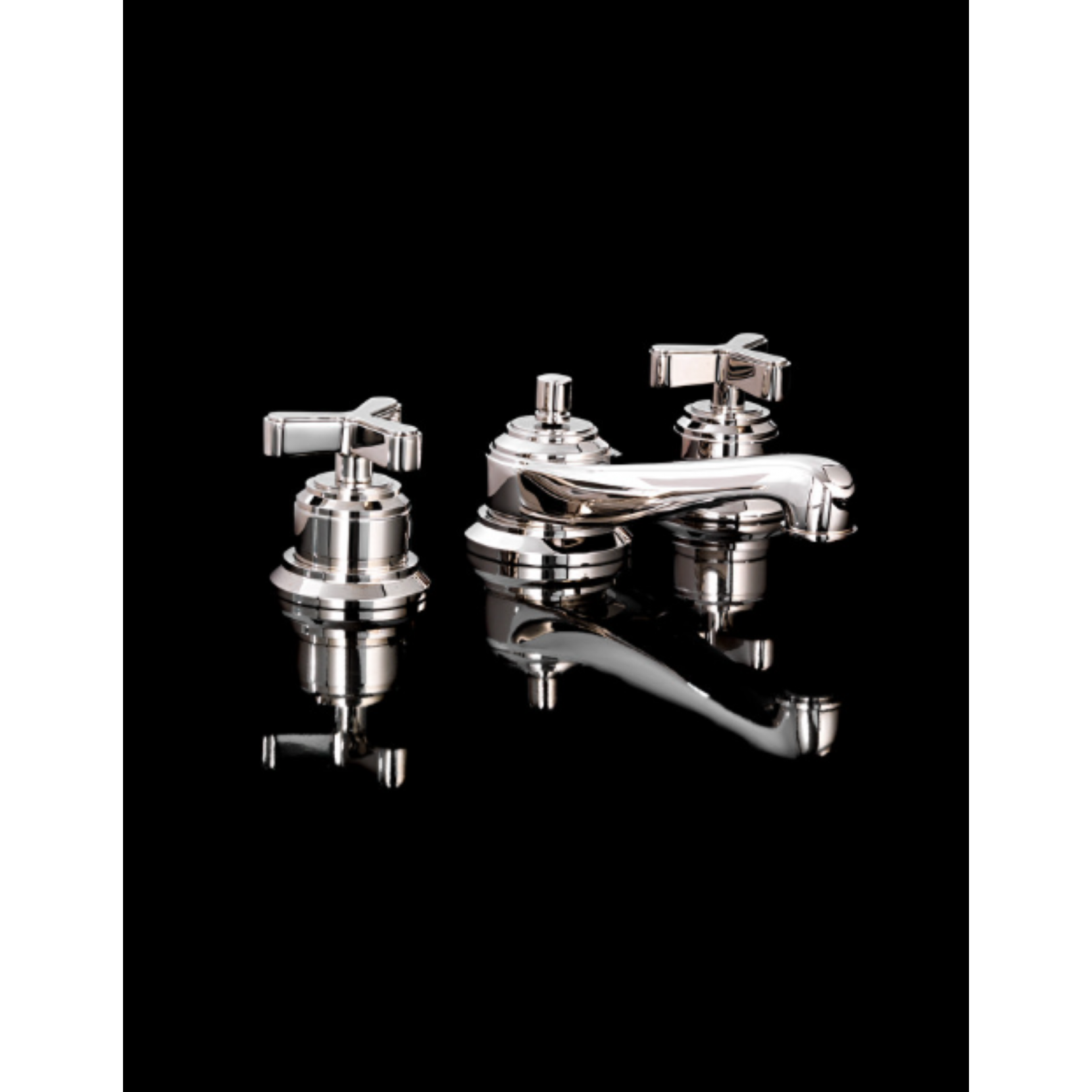 La batteria lavabo 3 fori con saltarello, TRIBECA, si ispira allo stile Retrò dell'eleganza dellea tradizionale rubinetteria con manopola a croce. Disponibile in diverse finiture di colore: Bronzo, Cromo, Nickel lucido, Oro chiaro.