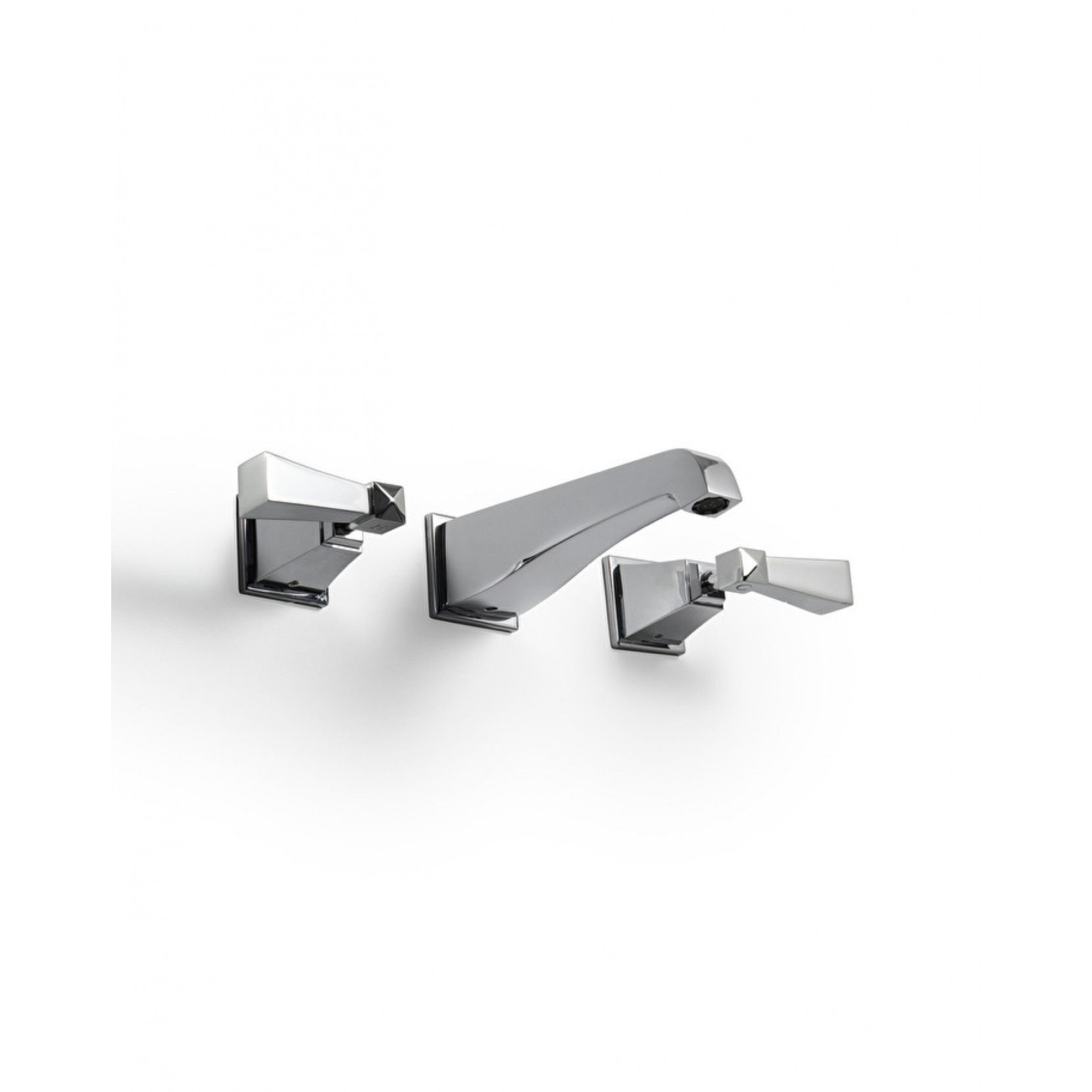 Il gruppo a muro, della serie VIP TIME è di forte ispirazione Anni trenta per un'elegante rubinetteria. Vip Time è resa inconfondibile dalla leva a tronco di piramide con leva in ottone finitura lucida nera.  Disponibile in finiture di colore: Bronzo, Cromo, Nickel lucido, Oro chiaro