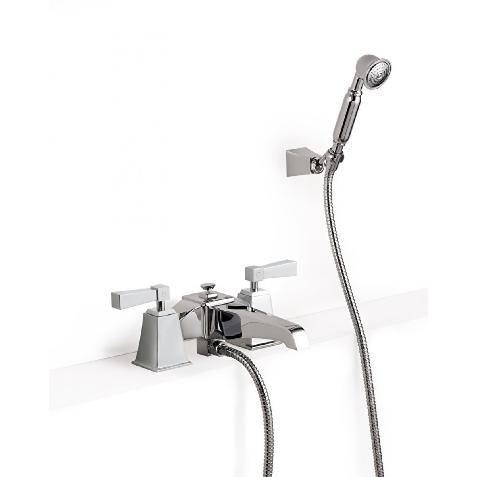 Il gruppo vasca per montaggio bordovasca con doccetta, flessibile e sostegno snodato, della serie VIP TIME è di forte ispirazione Anni trenta per un'elegante rubinetteria. Vip Time è resa inconfondibile dalla leva a tronco di piramide con leva in metallo. Disponibile in finiture di colore: Cromo, Nickel lucido, Nickel satinato e Oro chiaro.