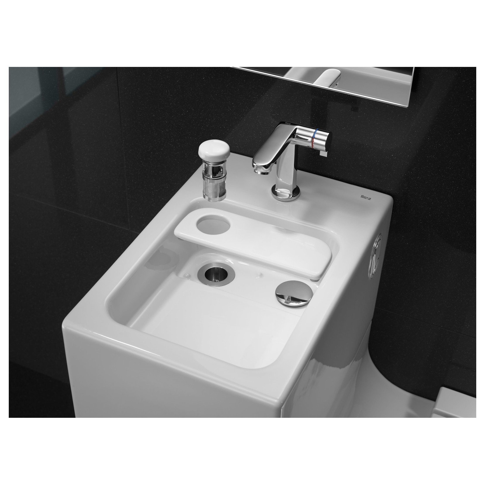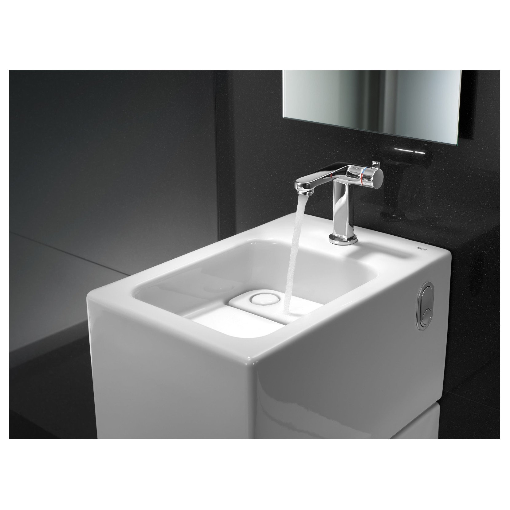 Roca ha pensato ad un lavabo e wc: 2 in 1 sostenibile. W+W permette di risparmiare acqua, il sistema soft close garantisce una chiusura morbida e silenziosa del coprivaso, sanitari e lavabo di ridotte dimensioni per piccole sale da bagno.
